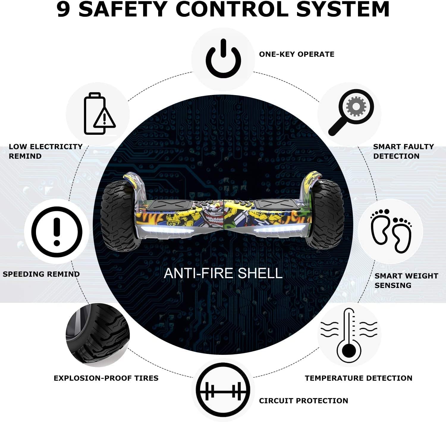 GeekMe 8.5 inch Offroad SUV Hoverboards with APP, Bluetooth Speaker, Dual Motor, LED Lights, All Terrain Hoverboards for Kids and Adults.