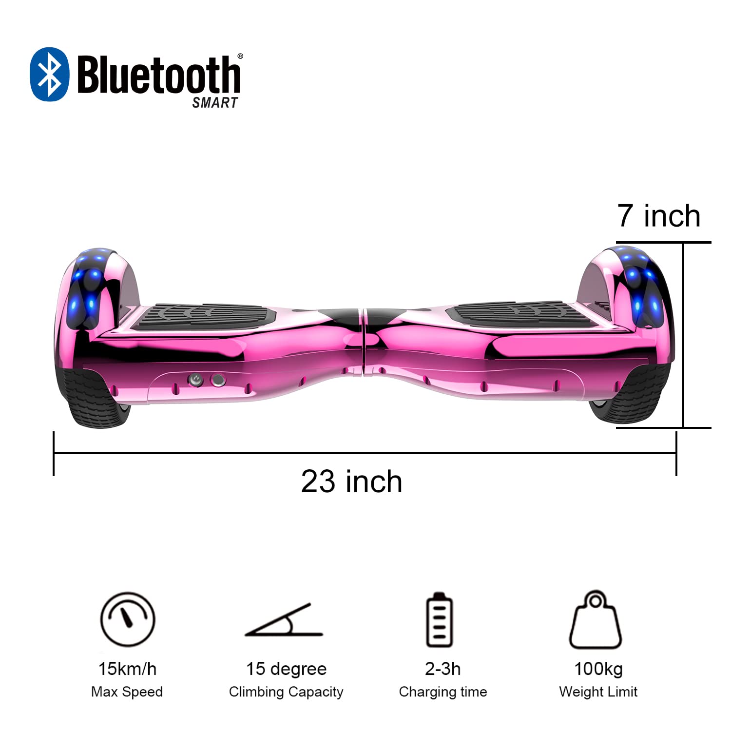 ⚡【Bluetooth Speaker and Specifications】Easily and quickly connect your smart device to the built-in Bluetooth speakers and enjoy high-quality sound. The hoverboards are compatible with all Bluetooth devices. The charging time is about 2-3 hours. The hoverboards support a minimum load of 20 kg and a maximum load of 100 kg. A standard UK charger is included.