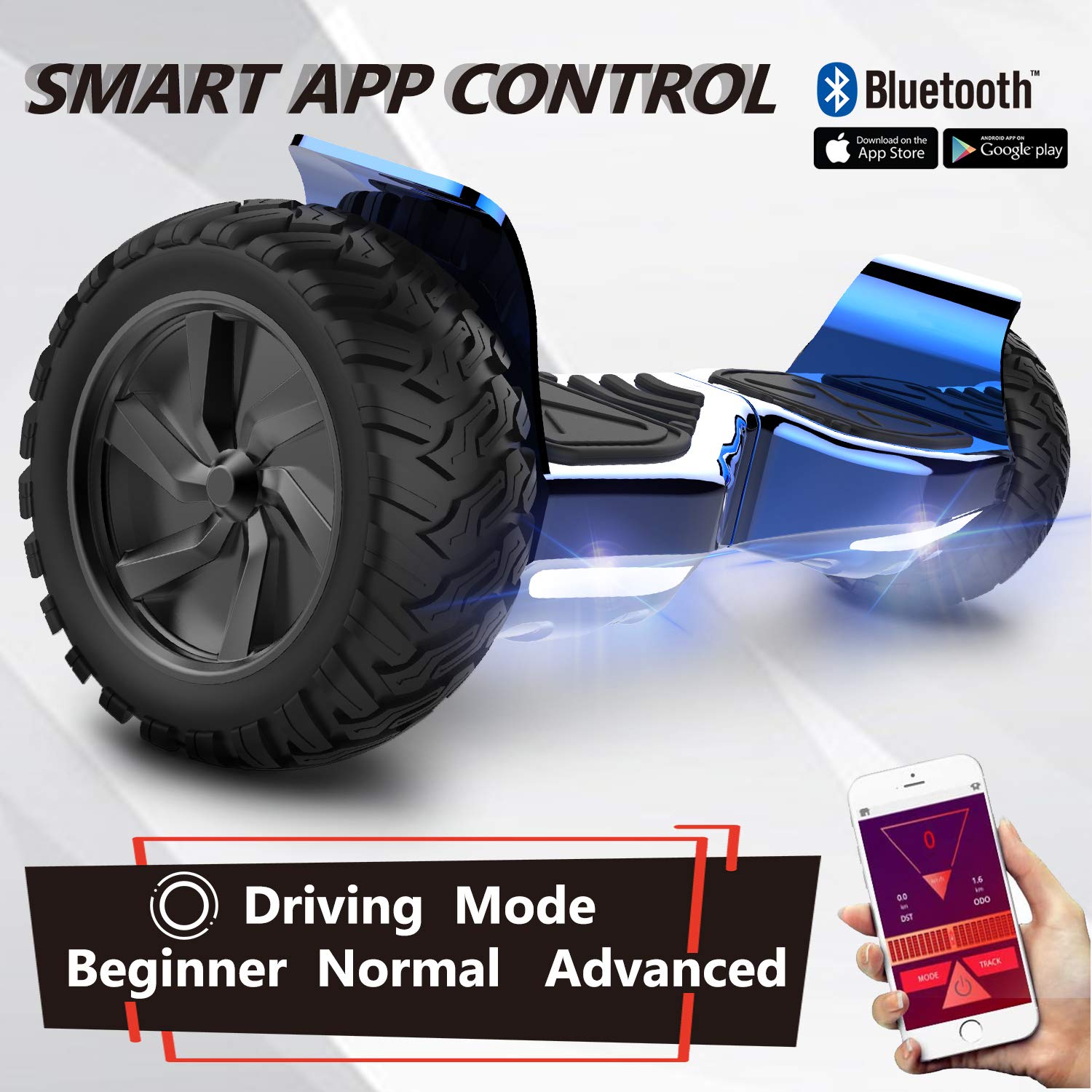 GeekMe off-road 8.5 inch SUV hoverboards with APP, Bluetooth speaker, dual motor, LED lights, all terrain hoverboards for kids and adults.