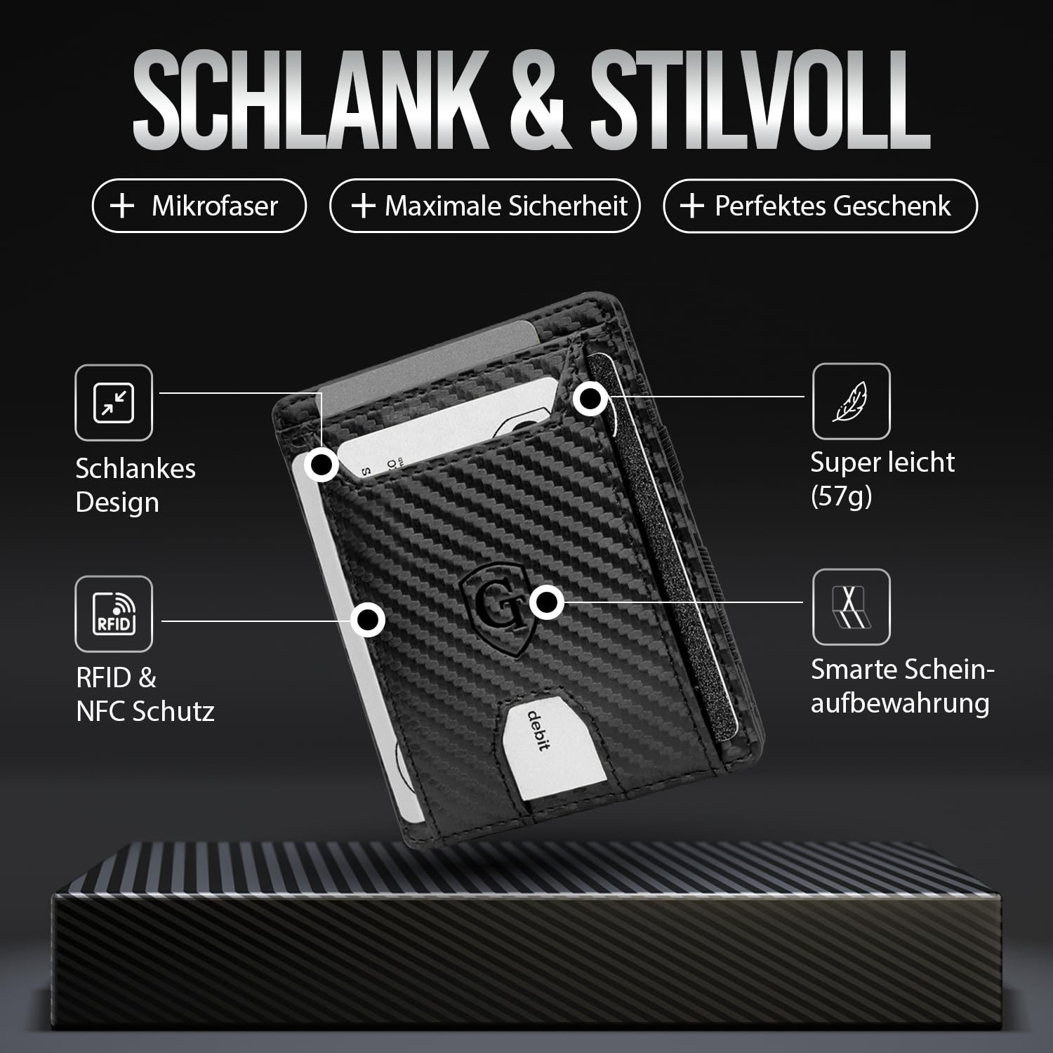 "◼️ MAXIMALE SICHERHEIT - The RFID and NFC protection, tested by an independent German TÜV institute, prevents your sensitive credit or debit card data from being read in the wallet"]