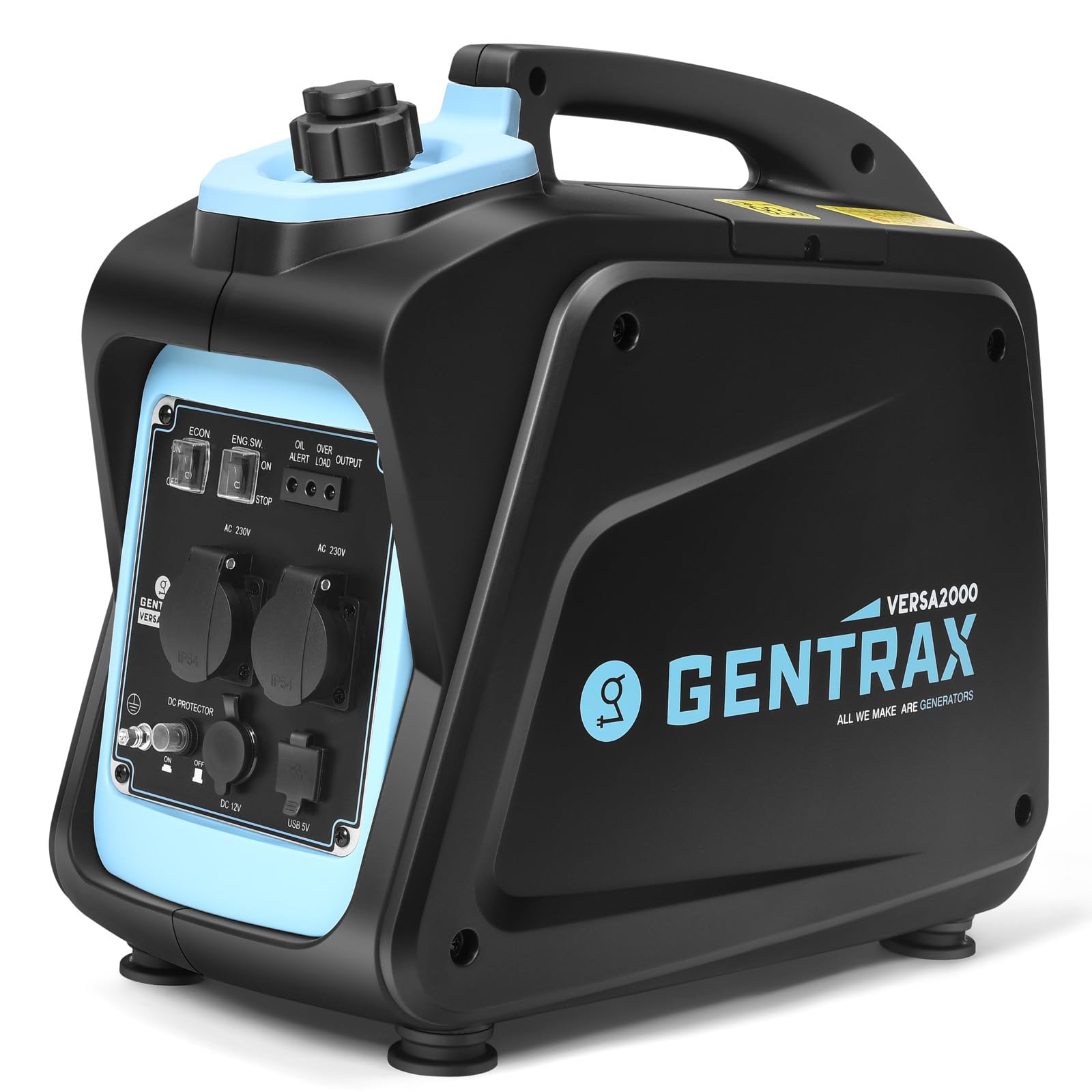 GENTRAX Inverter Generator 2000W 1700W MAX, gasoline powered, silent with pure sine wave, super quiet petrol generator with USB 230V sockets for camping, outdoor, construction site, RV