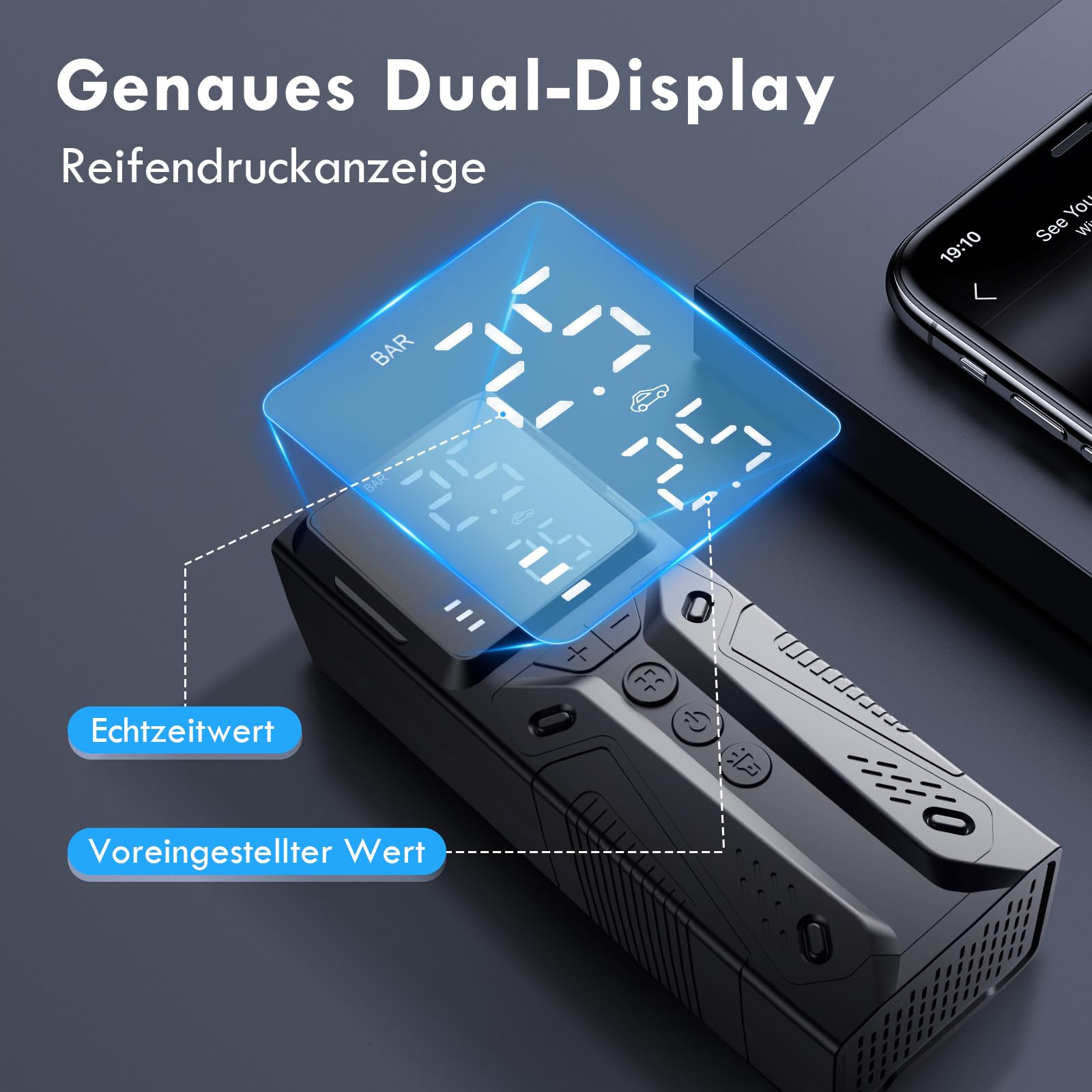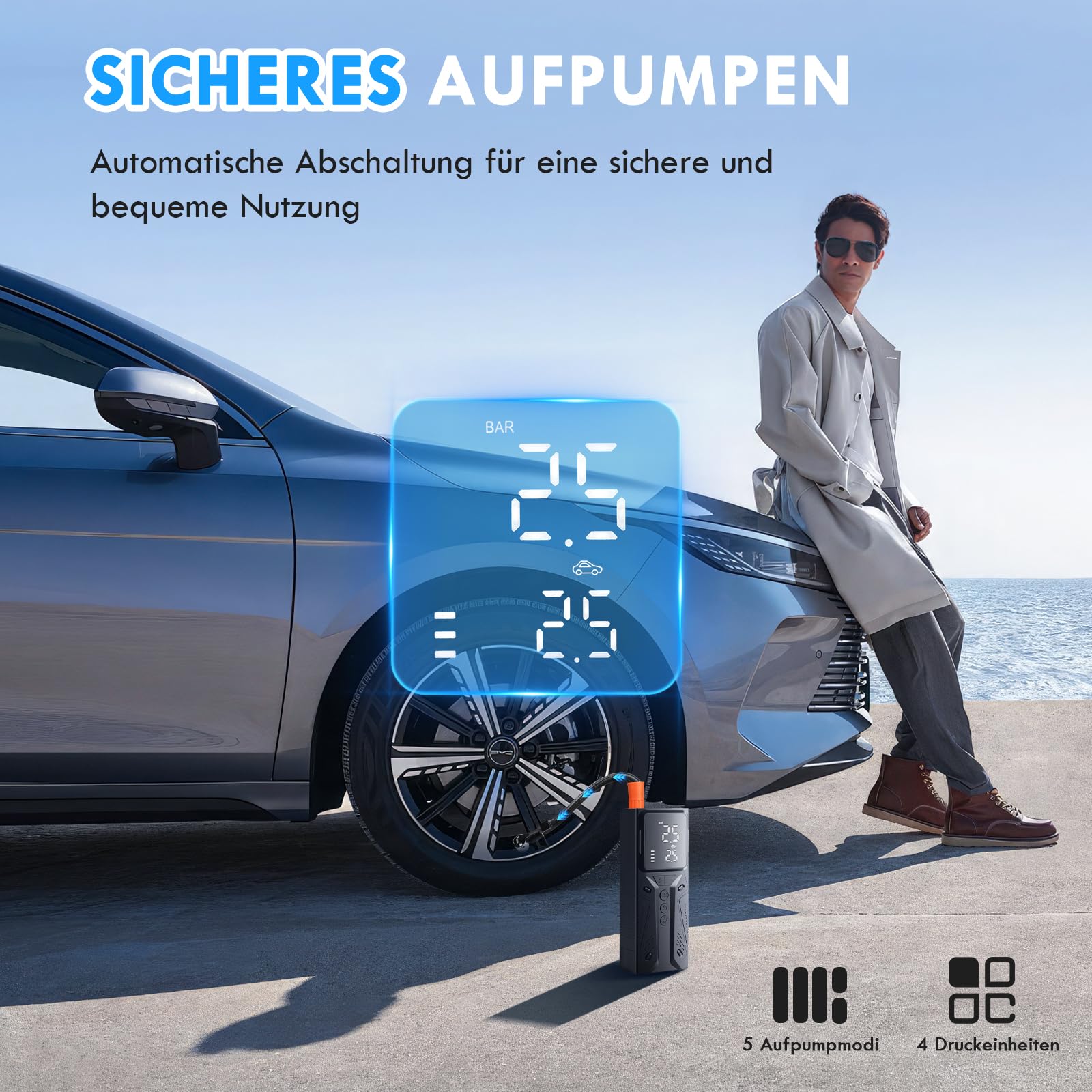 "【Easy Operation & Automatic Shutdown】Choose from 4 preset inflation modes or set a custom mode. A large digital display allows for quick reading of tire pressure, while the automatic shutdown function stops inflation once the set pressure is reached - over-inflation is avoided, accuracy is guaranteed",