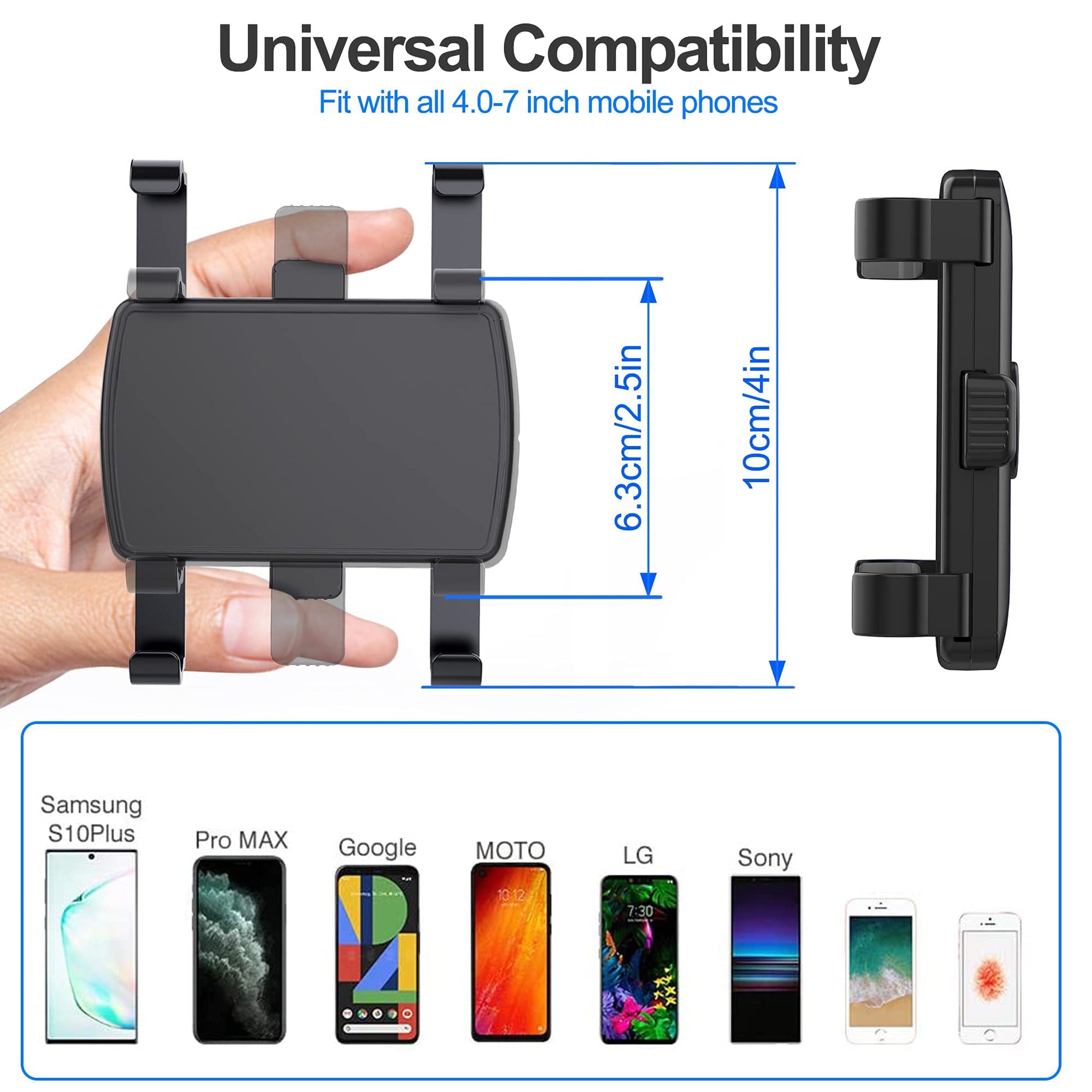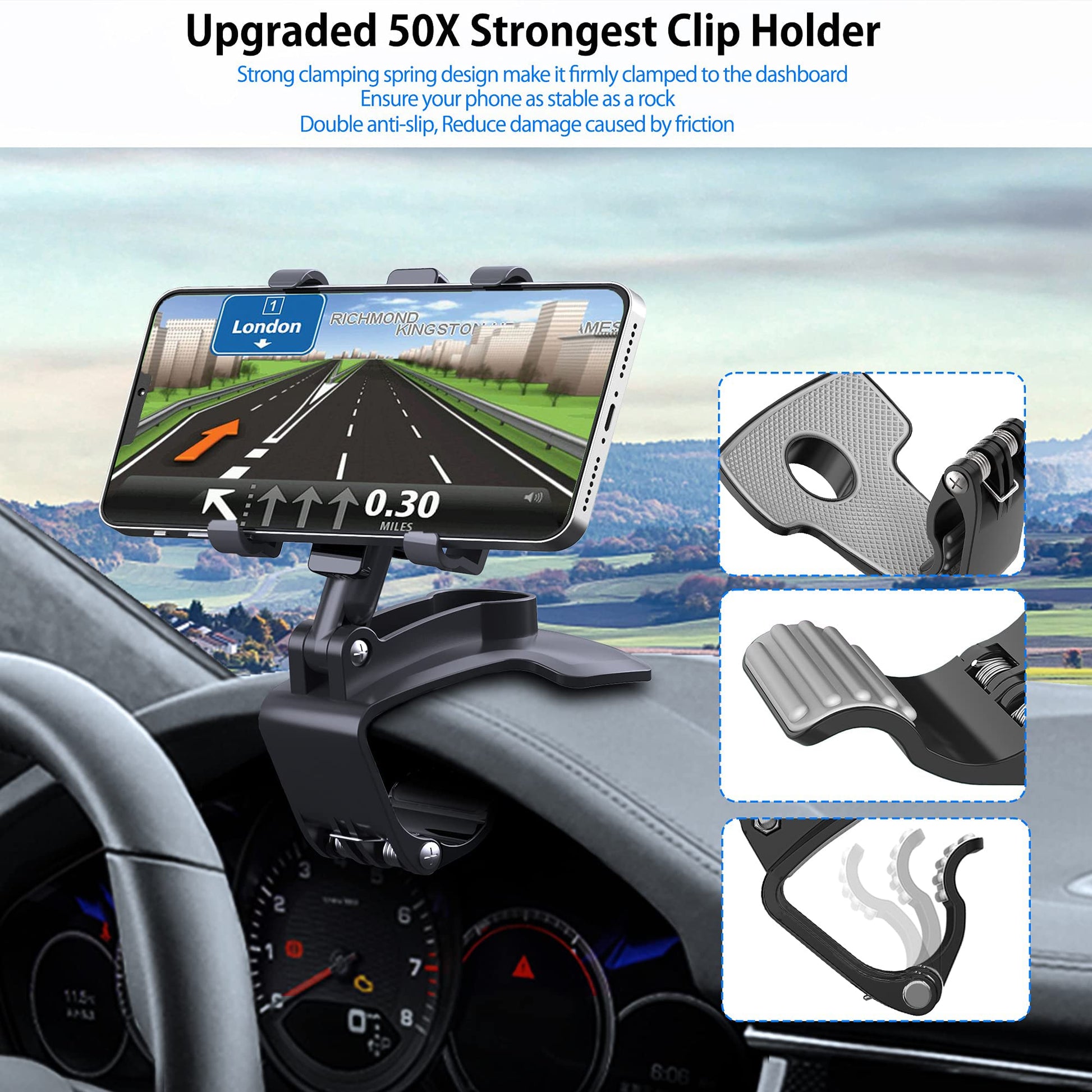 ["Wide Compatibility. Car phone holder Compatible with all iPhone and Android phones (4.0-7 inch phones), such as Compatible with iPhone 12/12 Pro/12 Pro max/12 mini/11/11 Pro/Xs /XR /X 8 /Huawei/Samsung/LG/Xiaomi, etc.","High-quality Materials. This base of this phone holder is made of high-quality soft silicone and ABS plastic. The base of stainless steel spring and silicone pad can help keep the device stable. The curved base prevents your phone from falling during a bumpy trip. Ideal for long-distance travel with GPS.","Upgrade Dashboard Phone Holder: Phone holder specially designed for the car dashboard. It is easy to display the phone's view at eye level without blocking the line of sight. You don't have to blink or struggle to display the GPS or phone interface. Make driving safer, reduce eye and neck strain.","360° Adjustable Angle & Easy Installation. The phone holder is freely rotatable by 360 degrees, the navigation can be used horizontally and vertically. Therefore, the car phone holder can easily rotate your phone in any direction. It holds the air vent firmly and it is easy to insert and remove the phone with one hand.","Multi-purpose Phone Holder: The car phone holder can be attached to the dashboard, sun visor, rearview mirror, in the office or at home like a table or nightstand, etc." ]