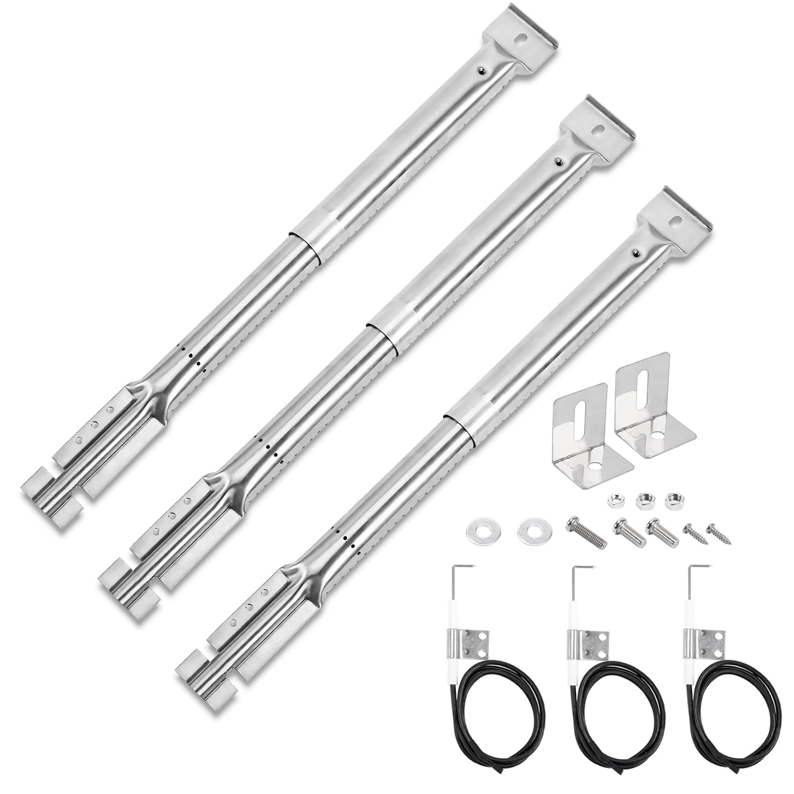 GFTIME 31 to 42cm Universal Burner Adjustable Replacement Parts for Tepro, Barbecook, Campingaz, Charbroil, Blooma. Adjustable stainless steel gas grill burner replacement accessories, 3 pieces.