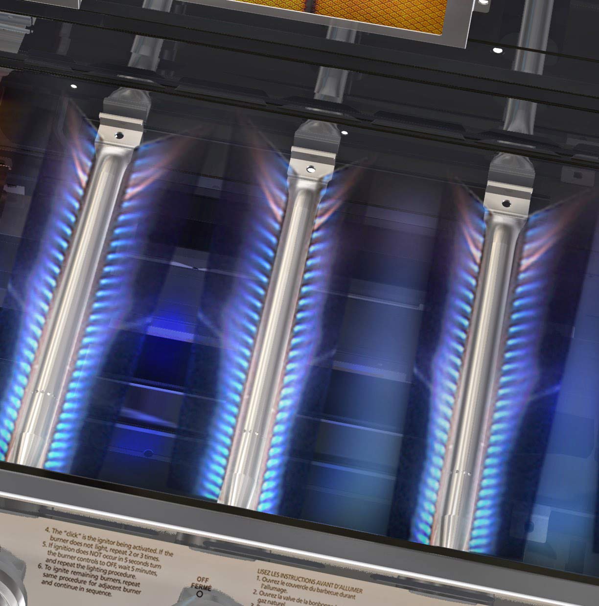 "Efficient combustion for optimal grilling results Our burner ensures a smooth gas flow and even flame, providing you with a perfect blue flame. This ensures uniform heat distribution and juicy, crispy grilling results.",
