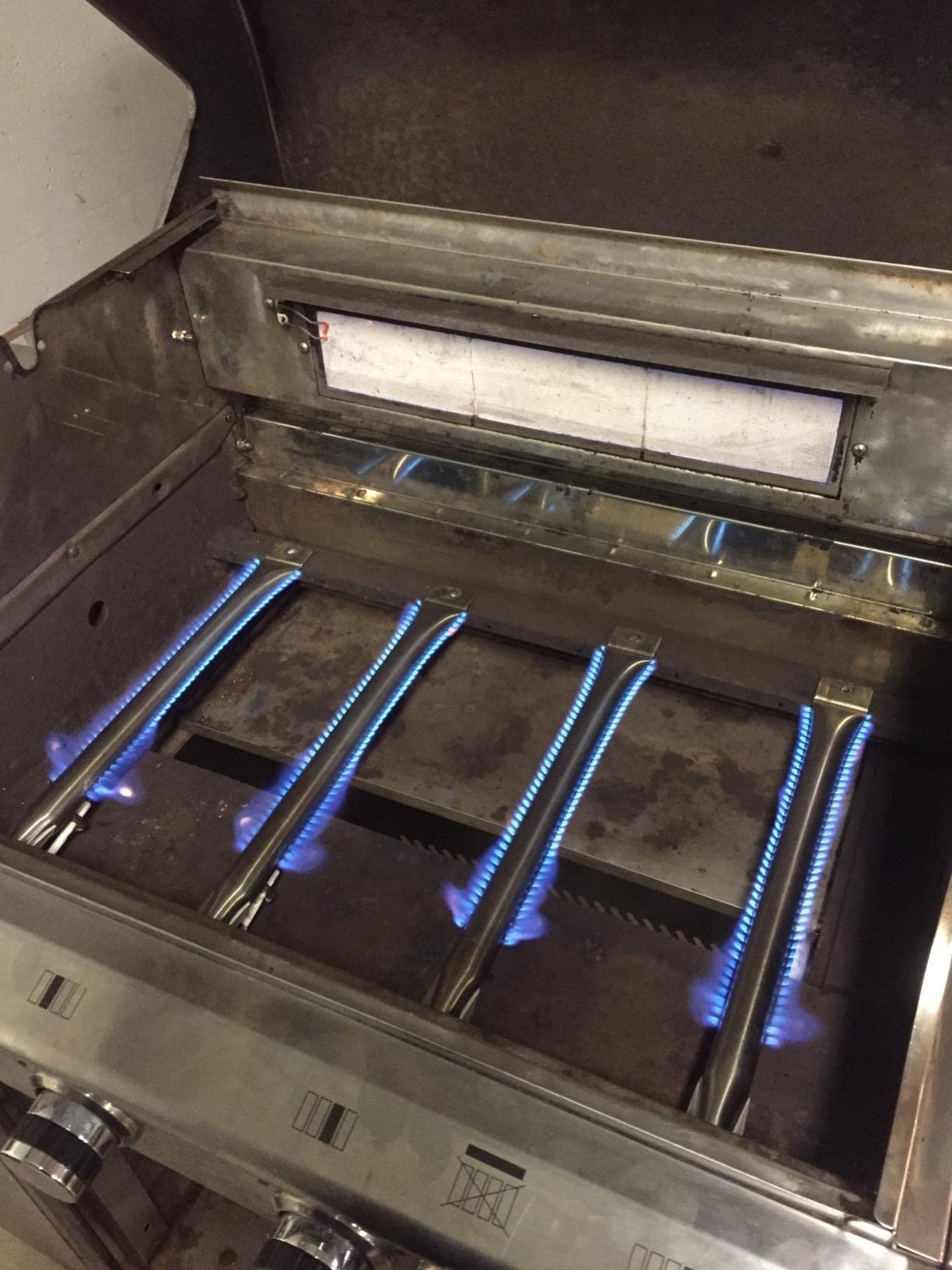 "Function: The burner provides an even blue flame throughout the grill, allowing you to cook your food evenly."]