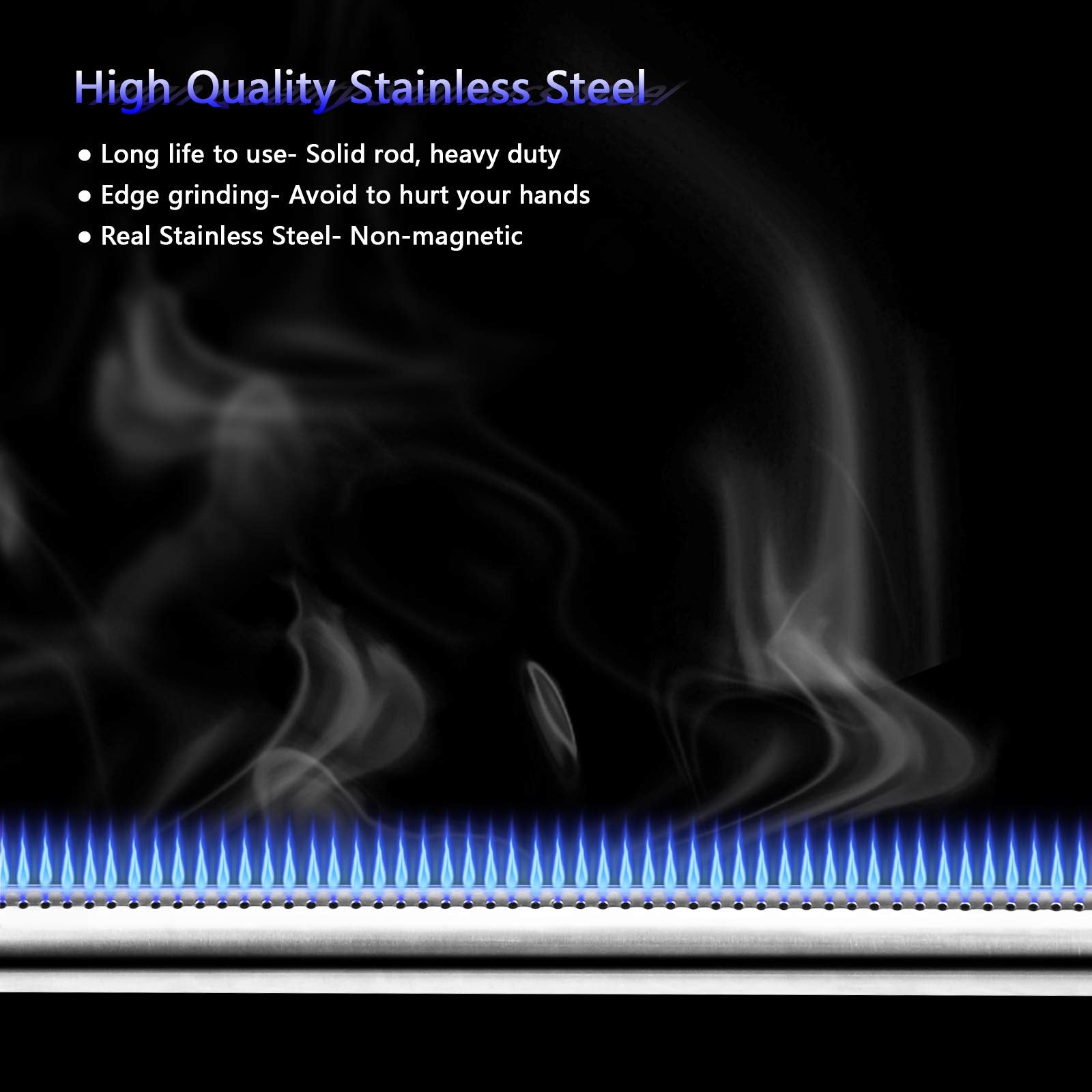 "Dimensions: 16.5\" x 1\". 🔥Material: Stainless steel, non-magnetic. 🔥Package: 4 pack burners. Includes ignition electrodes and bolts, easy to install.",