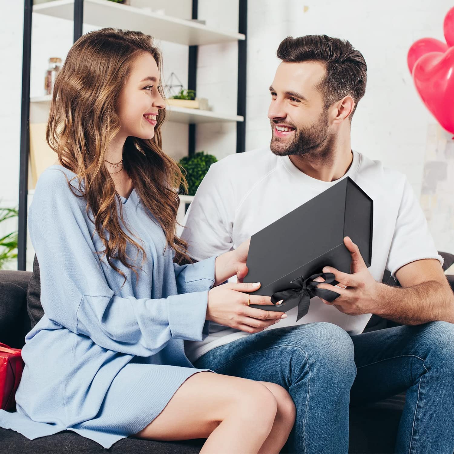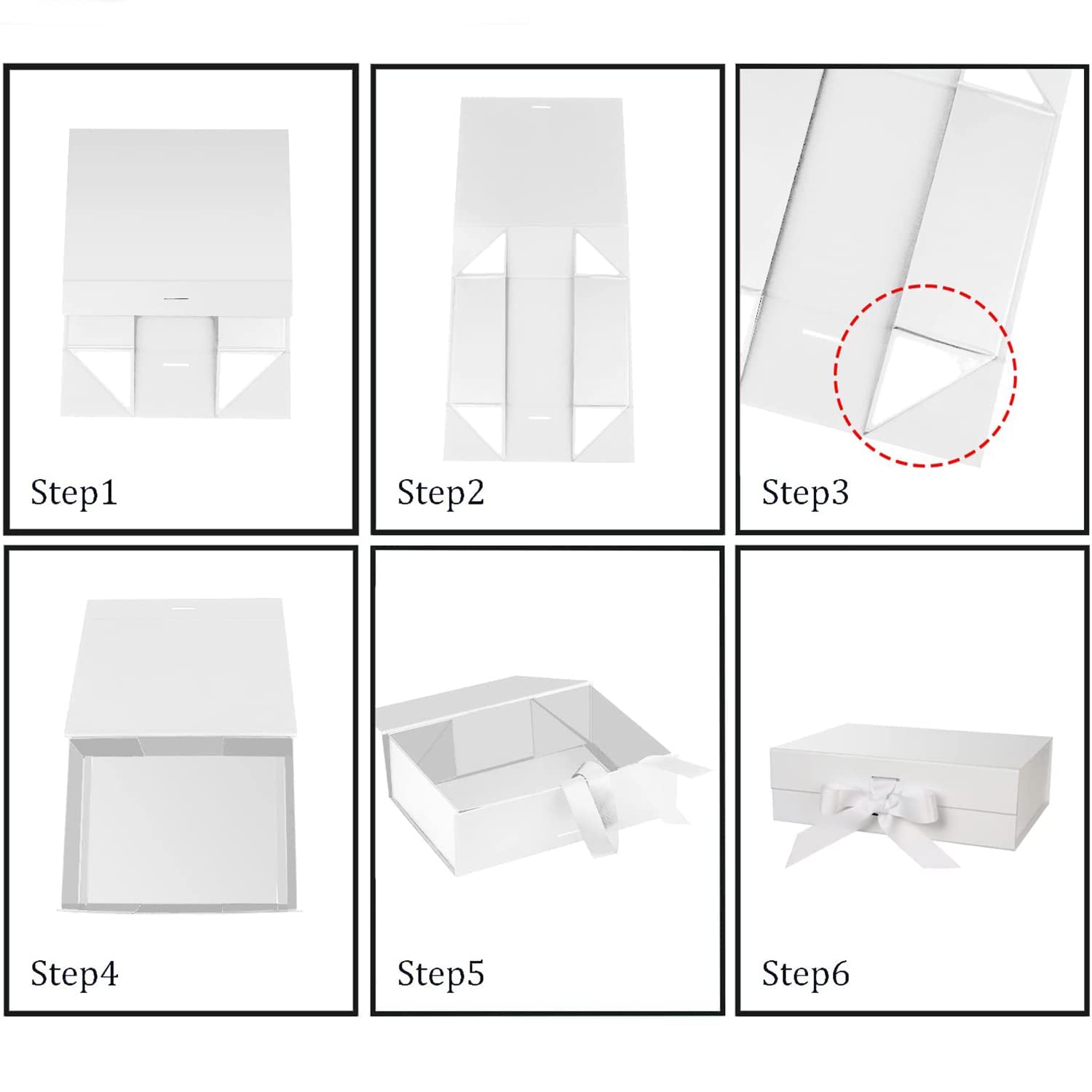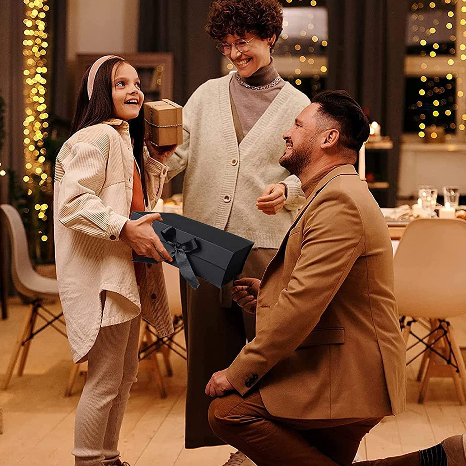 "Magnetic Closure Design--- This gift box is equipped with a hidden magnetic closure on two sides, making it easy to open and close the box repeatedly. The gift boxes are made of high-quality cardboard and wrapped with quality paper. The magnets can be used as reusable gift boxes and storage boxes.",