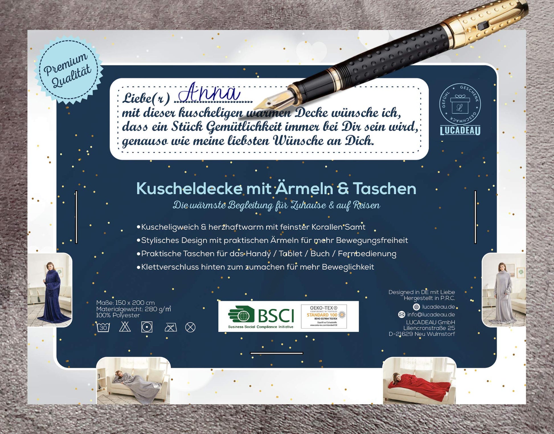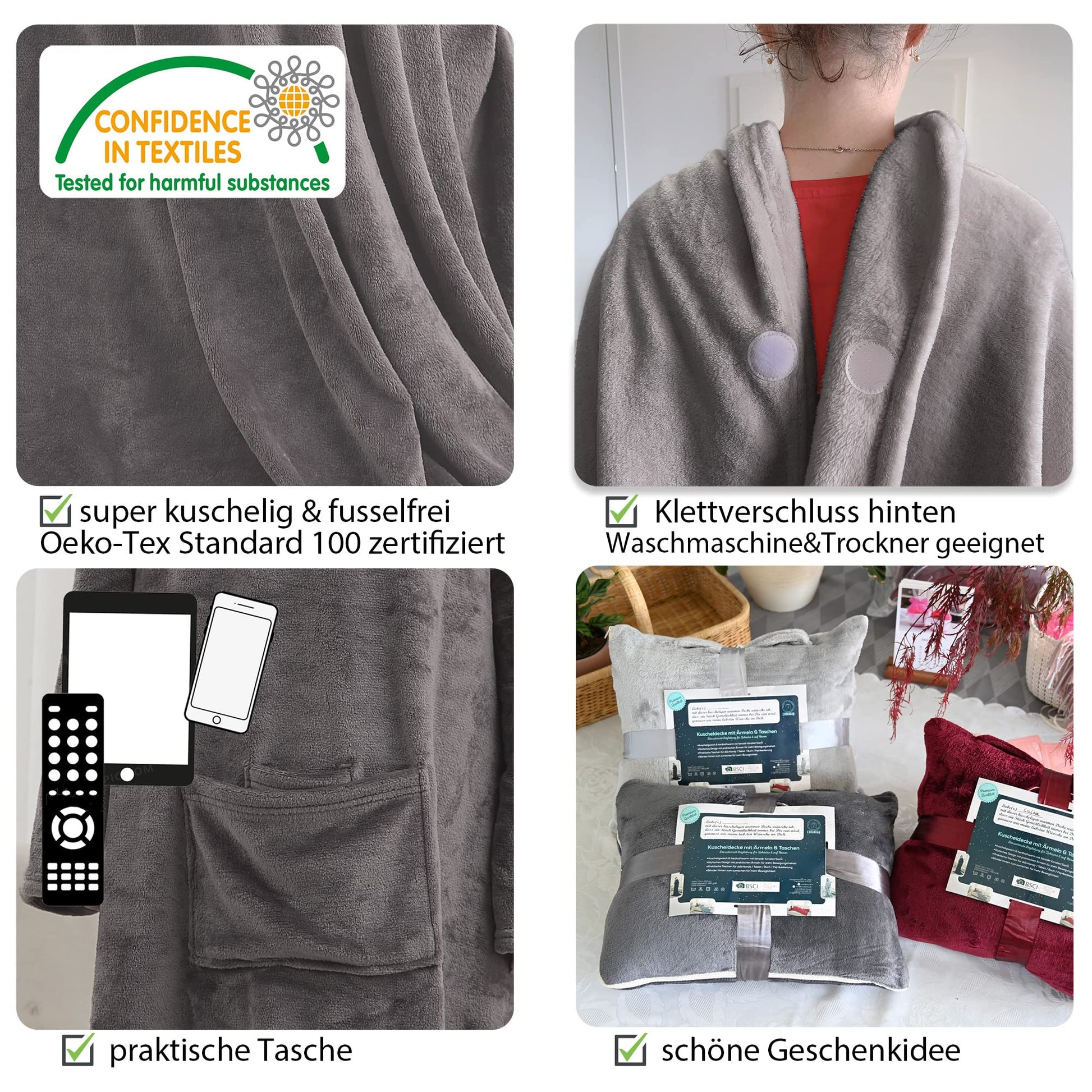 "The sleeve blanket is designed for maximum freedom of movement and warmth; ideal for relaxed evenings at home, camping or as a gift for friends and family; a must-have for every household."]