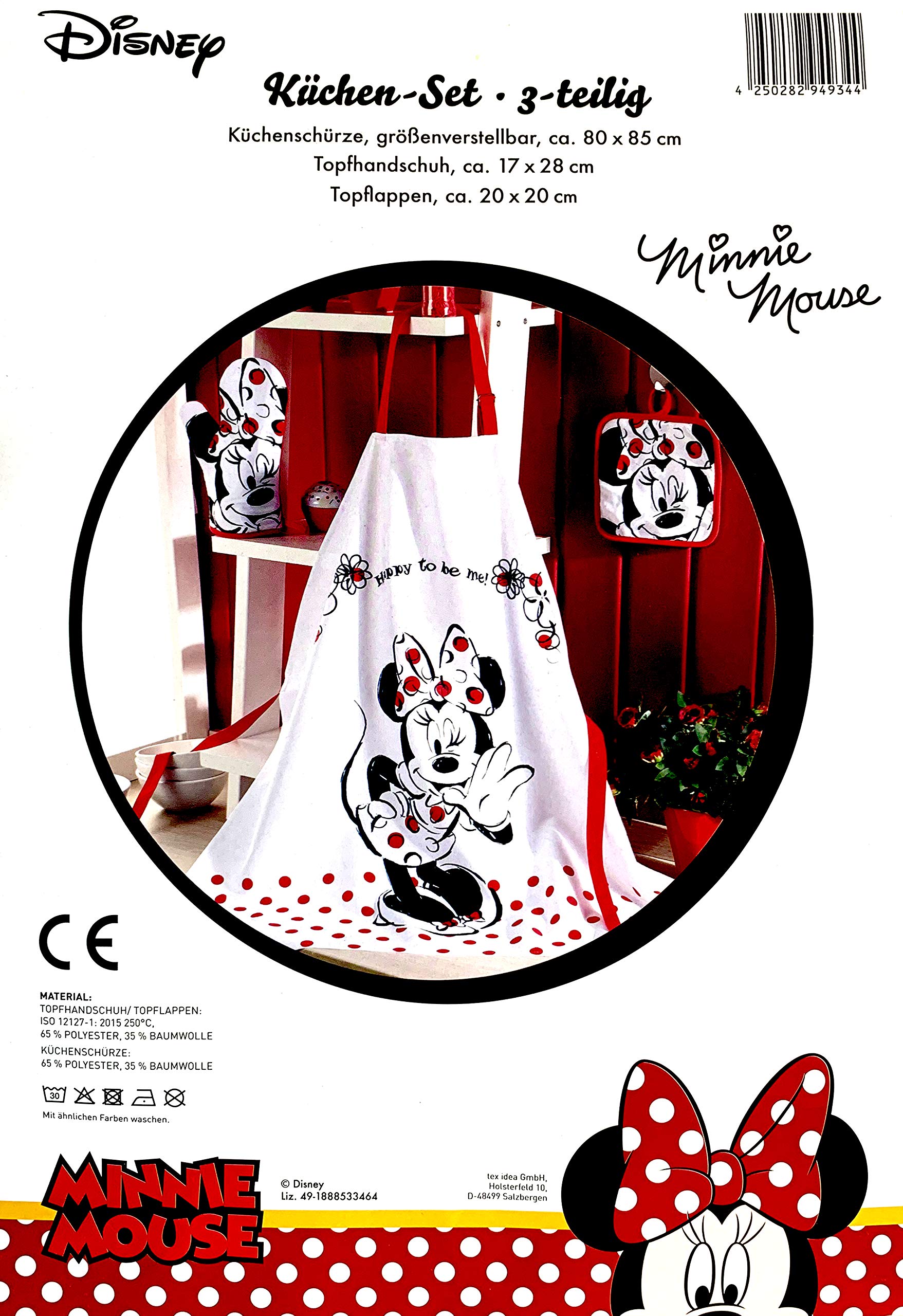 Gift idea for Walt Disney Minnie Mouse fans: apron set with Minnie Mouse mini apron. 65% polyester/35% cotton.