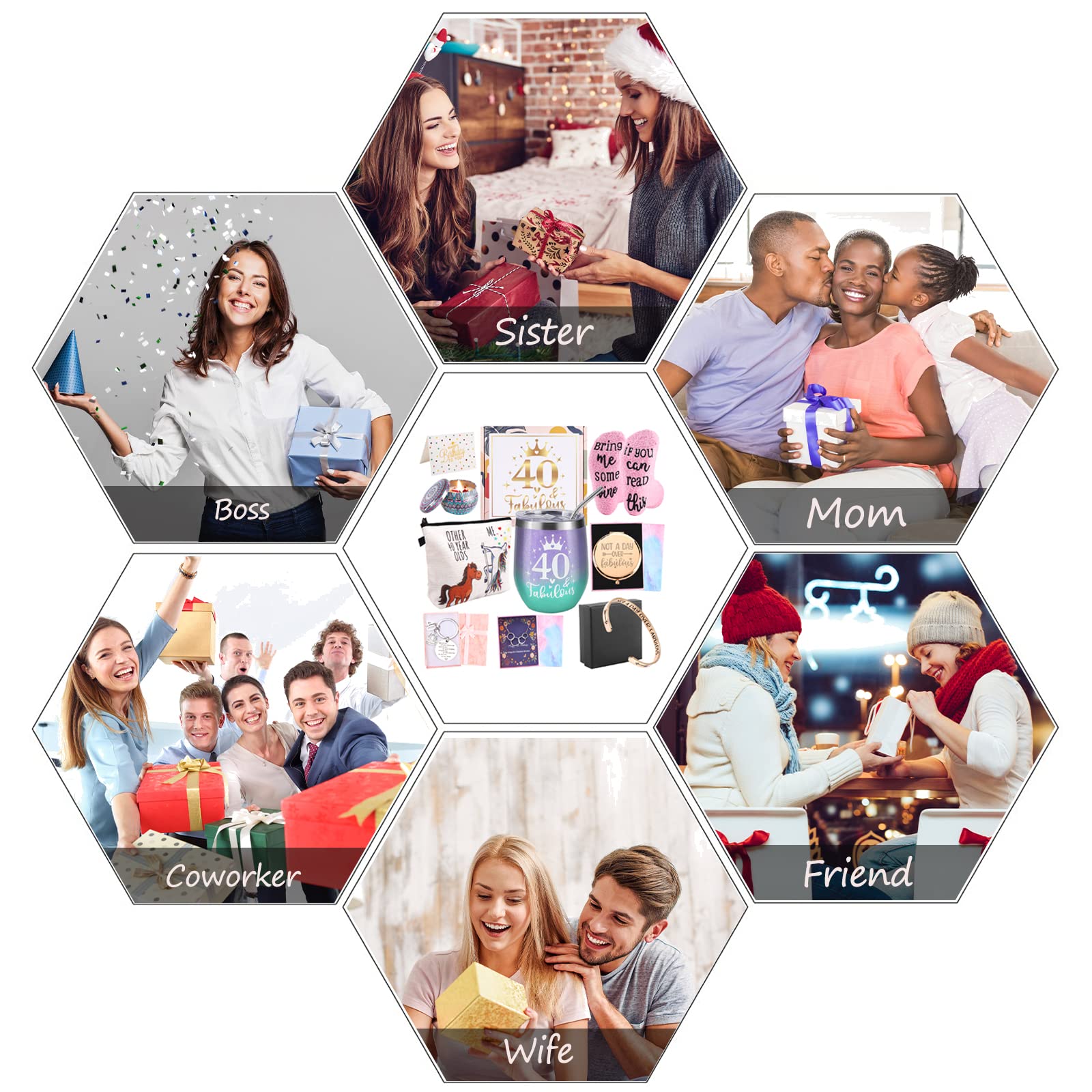 Words and beautifully designed gift box Each gift box is individually packed with OPP bags, showing superior quality, each word on each item expresses a deep blessing for their 40th birthday and provides a full sense of ceremony, it will definitely become the most memorable gift in their life.