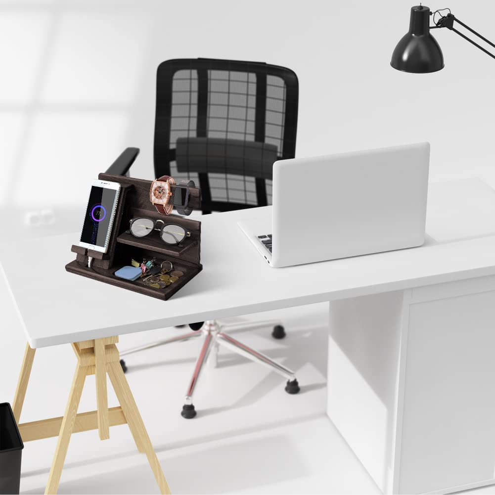 "Men's Christmas gift - Multifunctional Bedside Organizer Stand: The wooden phone docking station shelf charges your mobile phone, and holds more items on your dresser, counter, desk, or coffee table. Everything you need is always at hand, saving time and effort.