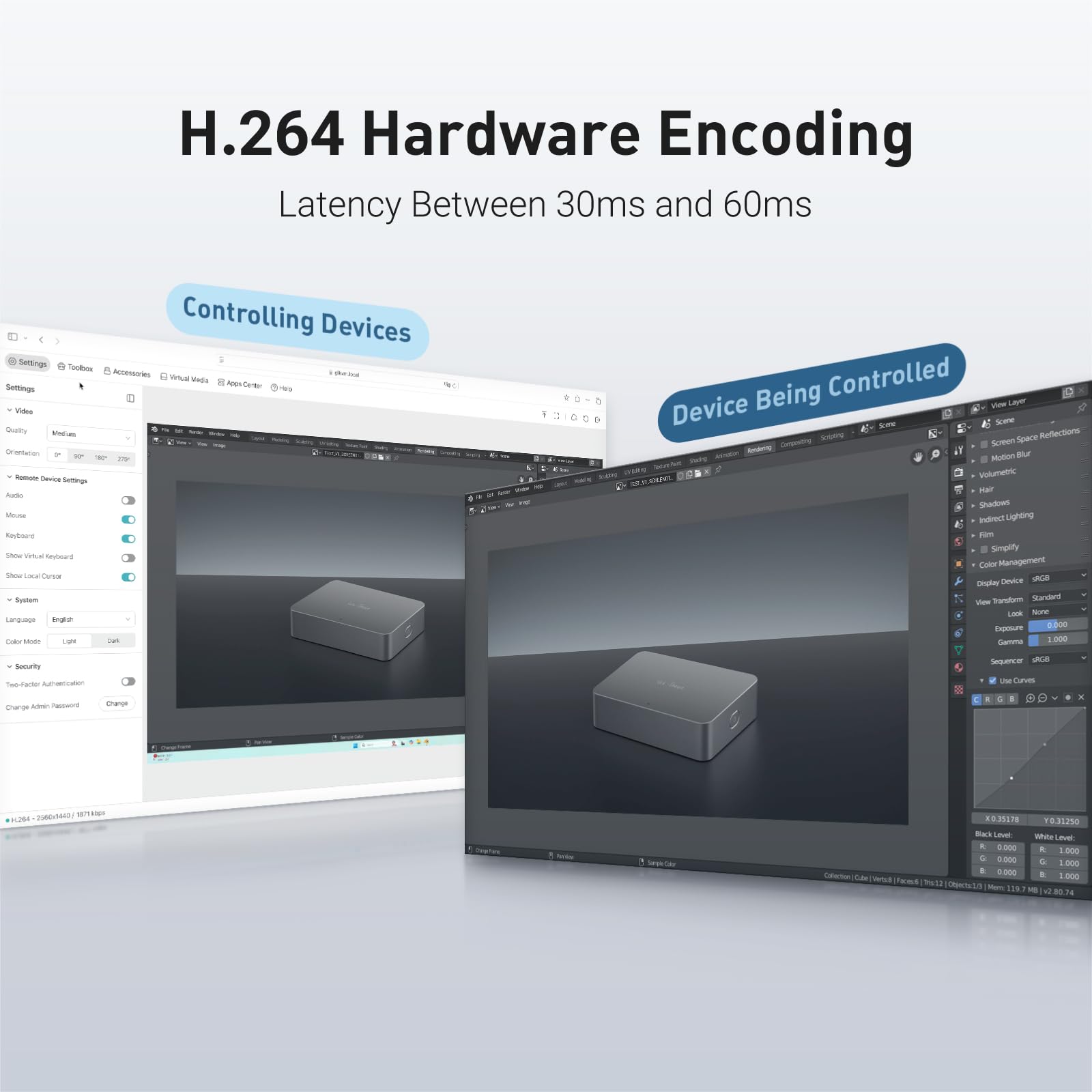 ["【Reliable Remote Control】 Restart faulty computers, install the operating system through BIOS control, and even power them on remotely with an accessory extension. No more need to visit data centers to repair crashed systems - ideal for IT teams and smart home enthusiasts.","【Universal Compatibility & Easy Setup】 Effortless connection to laptops, desktops, servers, industrial PCs, and streaming devices. Easy one-click connection via app - the computer to be controlled does not require additional software.","【4K Resolution & Audio Support】 Support for Gigabit network access. Experience desktop quality with a resolution of 3840 x 2160 at 30 Hz and a latency of < 60 ms. With synchronized audio, remote work feels as natural as being on site.","【Instant File Transfer】 Overcome the drawback of traditional KVM devices not being able to transfer files: Our solution allows seamless file sharing between devices - no more annoying synchronization issues when working remotely.","【Access Anywhere, Anytime】 Secure continuous remote access to your computers and boost your productivity - whether you're at home or on the go. Suitable for remote work and managing multiple computers."]