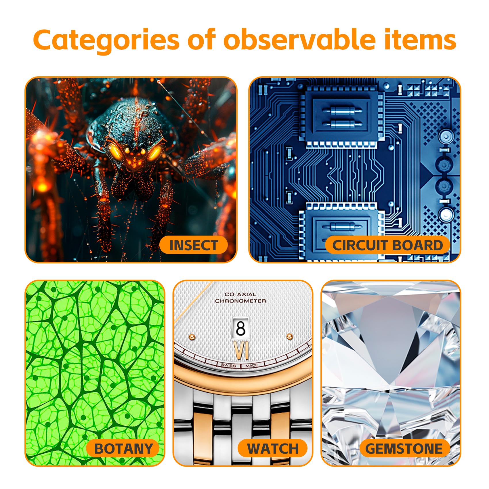 Versatile 50-1000x magnification: The digital magnification microscope allows you to zoom in and out to view incredible details with an impressive 50-1000x magnification. Whether you are diving into the complexity of the microcosm or examining macroscopic structures, this versatile magnification range ensures that you have the perfect level of detail for every subject.