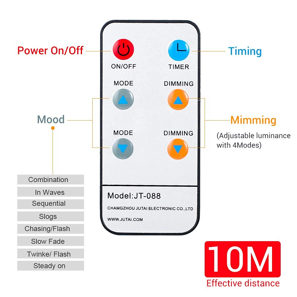 ["⭐️【Various Lighting Modes】 The GlobaLink Christmas lights with 12 stars and 108 LEDs offer 8 different lighting modes: Combination, Waves, Sequential, Slo-Glo, Chasing / Flash, Slow Fade, Twinkle / Flash, and Steady On, which you can adjust the mode according to your preferences easily with the remote control.","⭐️【108 Warm White LED with 12 Hooks】 The light curtain with 108 LEDs is 7.2 feet wide. It has a total of 12 strands and 12 hooks, half of which are 3.3 feet long with 10 LEDs and the other half are 2.3 feet long with 8 LEDs. 108 LED lamp beads are super bright and create a warm atmosphere for the places you like. This string light is the ideal decoration for parties, weddings, birthdays, family dinners in the hotel, restaurant, garden, house, office, bedroom.","⭐️【Safe to Use】 The star string lights have passed CE ROHS CE EMC CE-LVD certification. Our CE plug according to European standard ensures your safety when using it. In addition, this plug is IP44 waterproof. It has the memory function and can remember the last lighting mode. Attention: LED beads are not waterproof, so do not expose them to rain.","👍【IP44 Waterproof】: Waterproof rating IP44 to withstand light rain or water splashes, but the power supply and controller are not waterproof. Perfect decoration for outdoor and indoor use (Note: the plug transformer is not fully waterproof, please keep it away from water.)","❄️【Widely Used】: The star curtain lights are perfect for window, room, restaurant, and wall decorations. They are specially designed for various occasions: Christmas, Valentine's Day, party, wedding, holiday, or other important events; The star design with warm white LED lights makes occasions full of joy and vitality."]