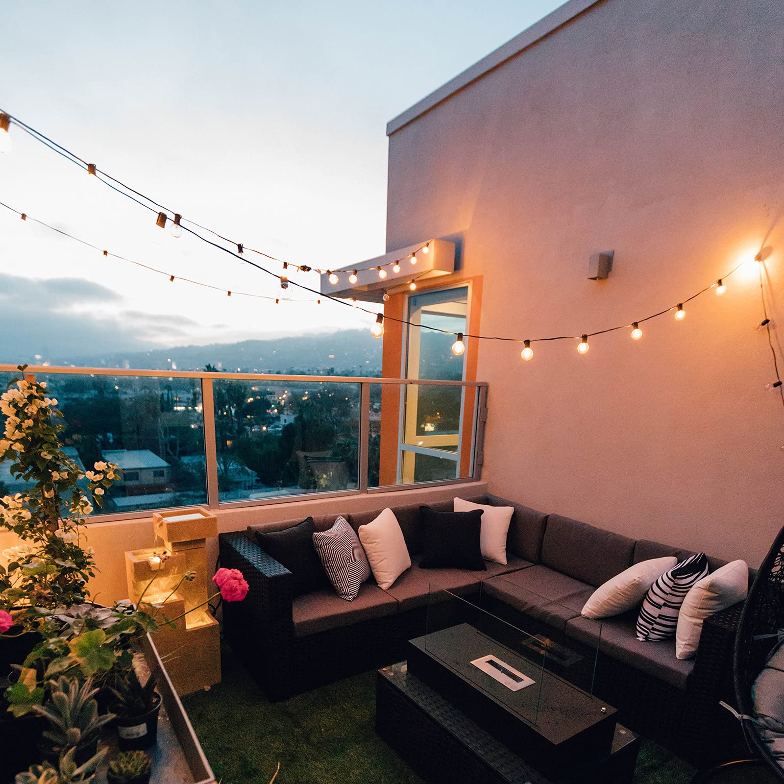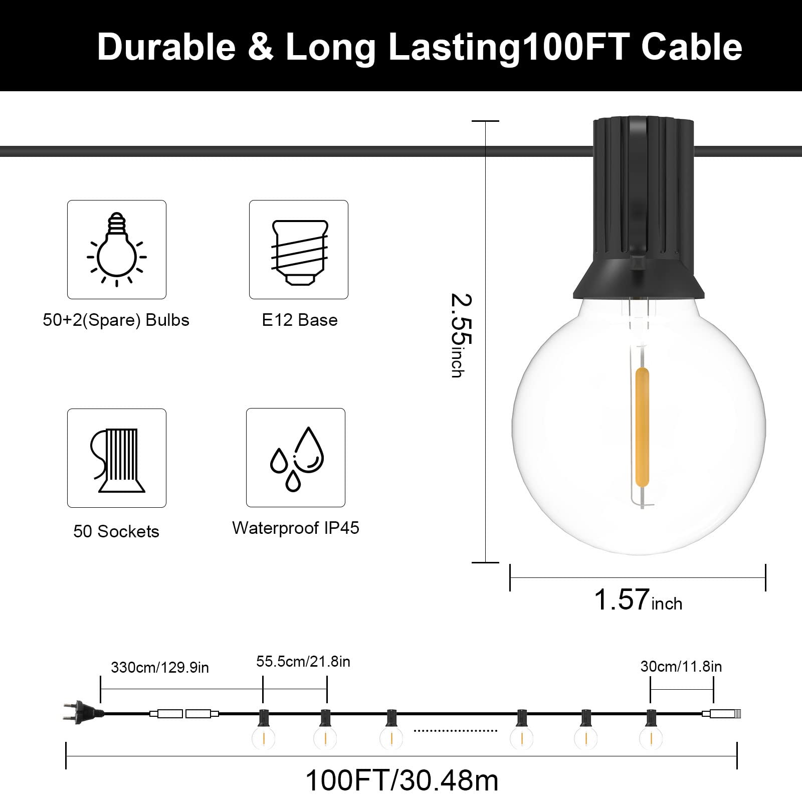 ["Connect multiple outdoor light chains】The interface is waterproof and supports end-to-end connection of up to 10 chains. You can customize the length you want to install. With flexible and easy installation, hooks are located at each socket that can be easily hung with hooks, guide wires, or zip ties to provide you with a wider range of pleasant and bright atmosphere.","Break-resistant G40 LED bulbs】Use highly transparent acrylic plastic materials instead of fragile traditional glass bulbs. It withstands all weather conditions throughout the year and is suitable for outdoor lighting decoration. Equipped with 50 LED bulbs and 2 spare bulbs, safe, reliable, energy-saving, and cost-saving.","Durable and safe】Garden String Lights wire has high flexibility, high temperature and aging resistance to ensure electrical safety. Insulation materials can protect the steel strands from heat, cold, sun, wind, rain, snow, and moisture.","Versatile】Outdoor light chains emit natural warm light (2700K) and create a warm and romantic atmosphere, suitable for indoor/outdoor, garden, patio, bistro, barbecue, dinner, wedding, birthday party, or Christmas tree and other occasions decoration perfect choice.","GLUROO-friendly service】If you have any problems with our product quality or use, please contact us (log into your account, check the order ID, and click on "Contact Seller" to contact us. Offer you a better shopping experience, please rest assured to buy."]