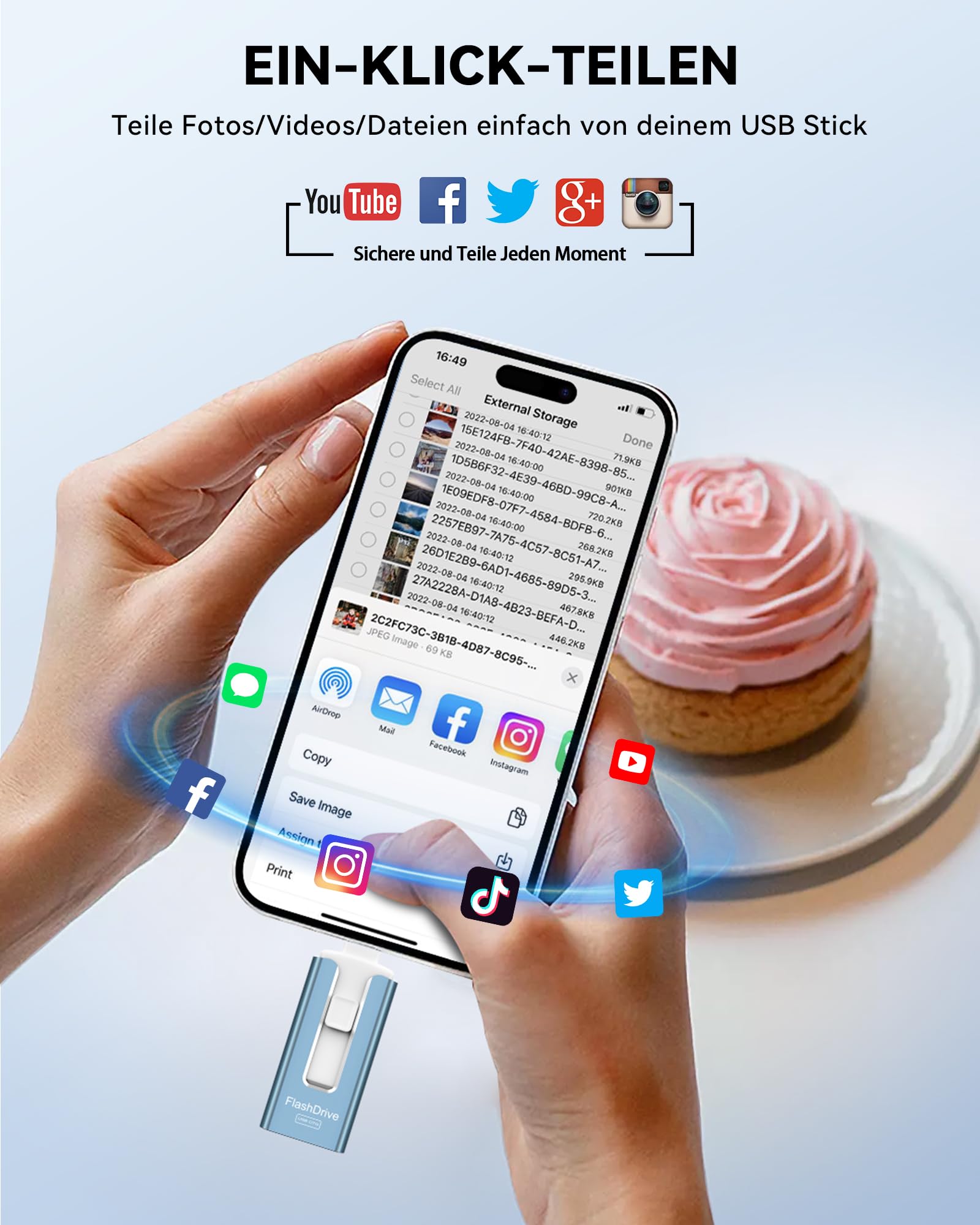 - Data Encryption: Download the "LUV-Share" app for iOS devices for free from the App Store (iOS only, not required for Android phones). You can encrypt the file information in the app with a password and Touch ID. You can choose whether to encrypt the entire USB stick or only specific files. Even if you accidentally lose your flash drive, your privacy is not compromised.
