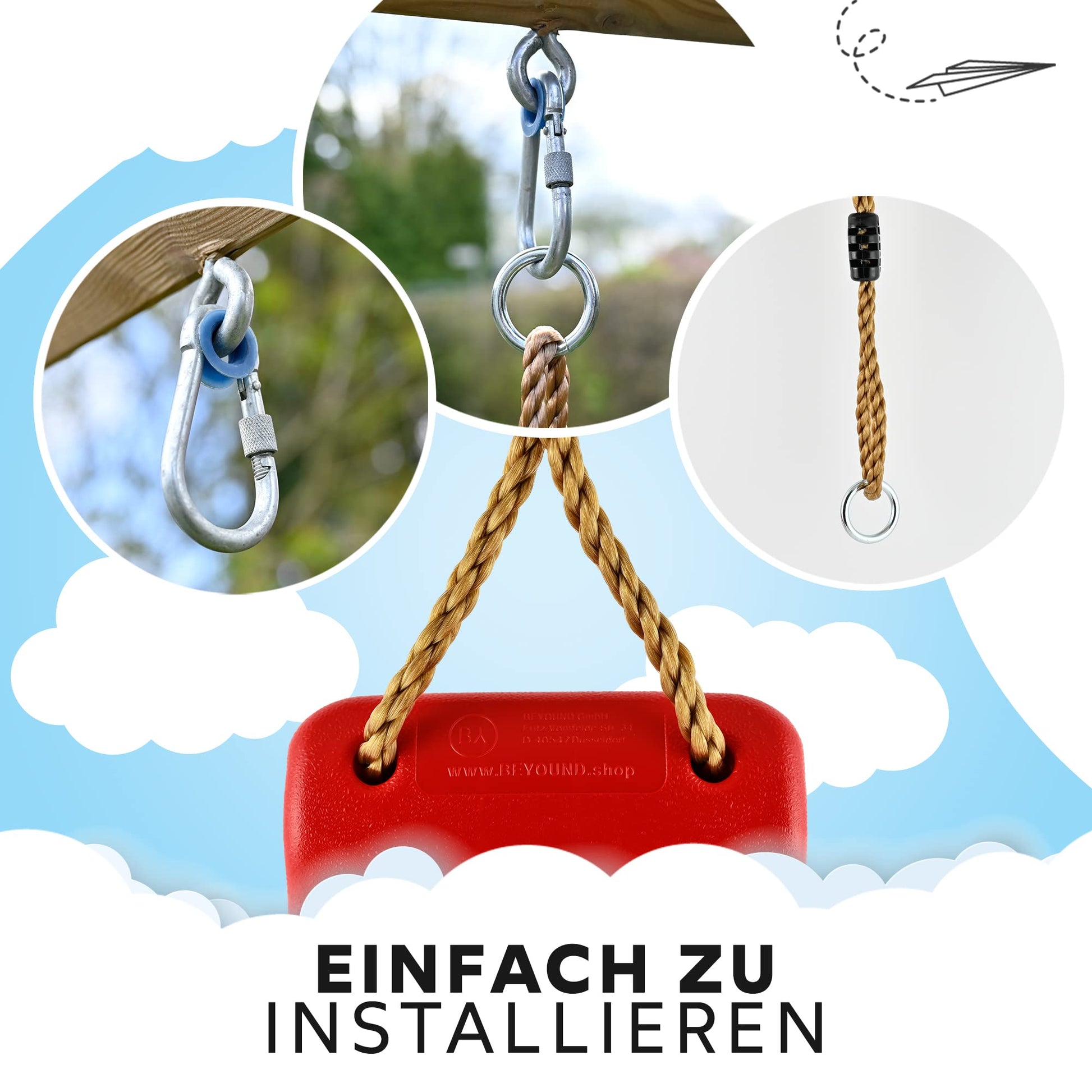 Adjustable length - Whether as a toddler swing or for growing kids, our SKY STORMER SWING grows with your child! It is flexible and adjustable up to a rope length of 1.80m. The swing rope is comfortable for children's hands and is held by sturdy brackets.