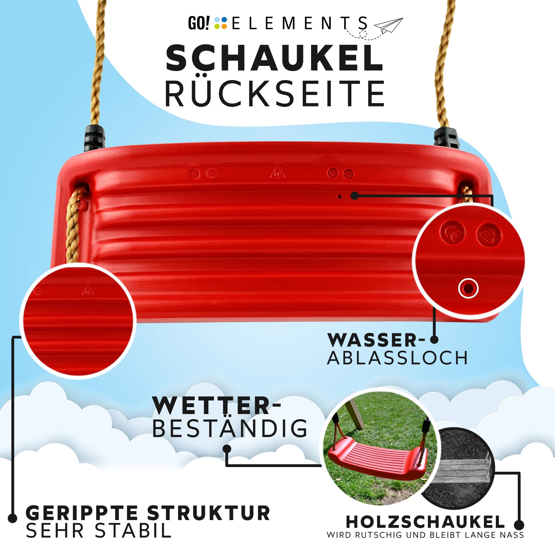 GO!elements Swing Garden - Children's Swing Outdoor Indoor - Swing Seat Swing Board Board Swing for Kids to Swing - Adjustable Height - Non-slip - Color: Red