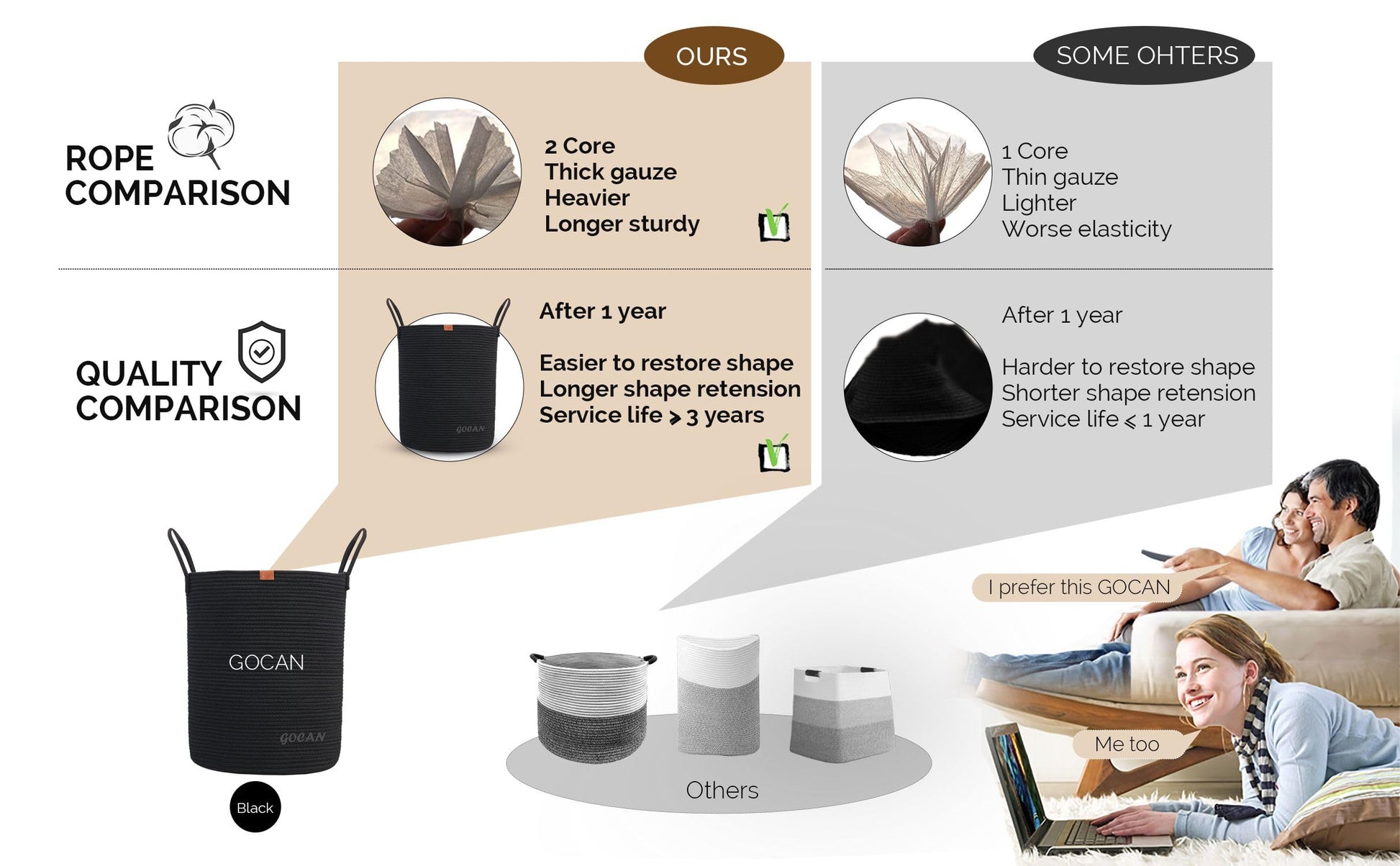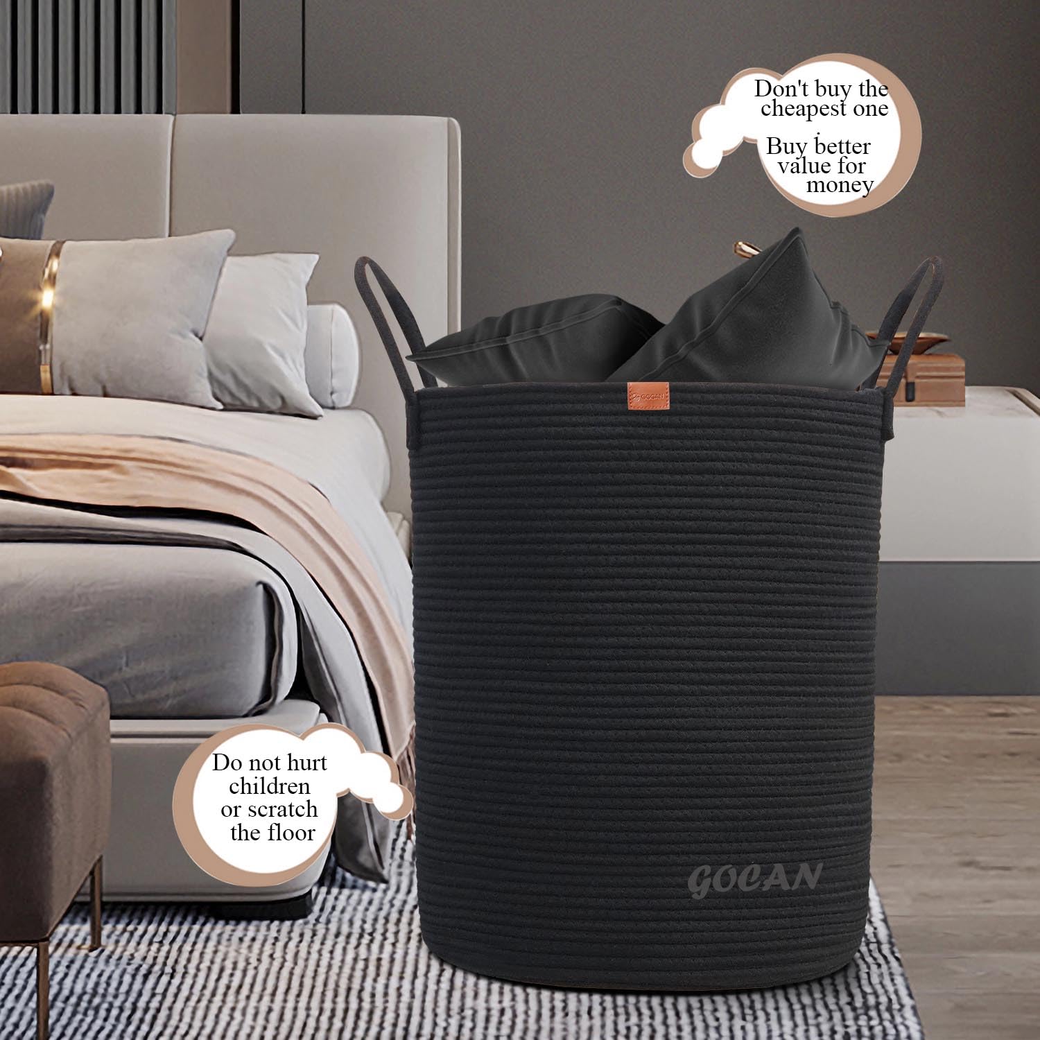 "【Well Made & Well Made】All GOCAN woven baskets are carefully and purely handmade by skilled workers with sewing machines. During shipping, it is inevitable to fold and there will be wrinkles. Please understand and forgive this, but we use two highly elastic cotton cores that are easier to shape and more stable to use. Cotton thread is finer and feels better.