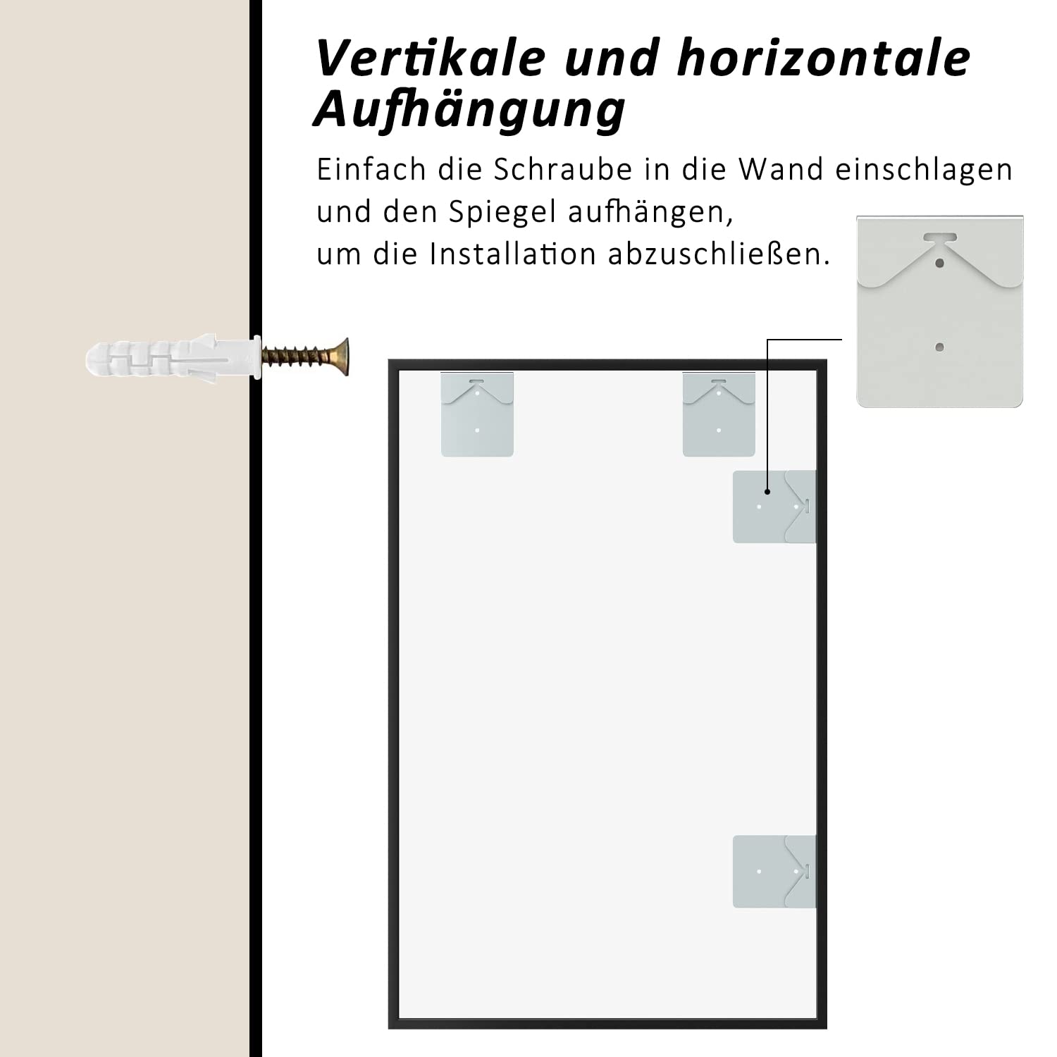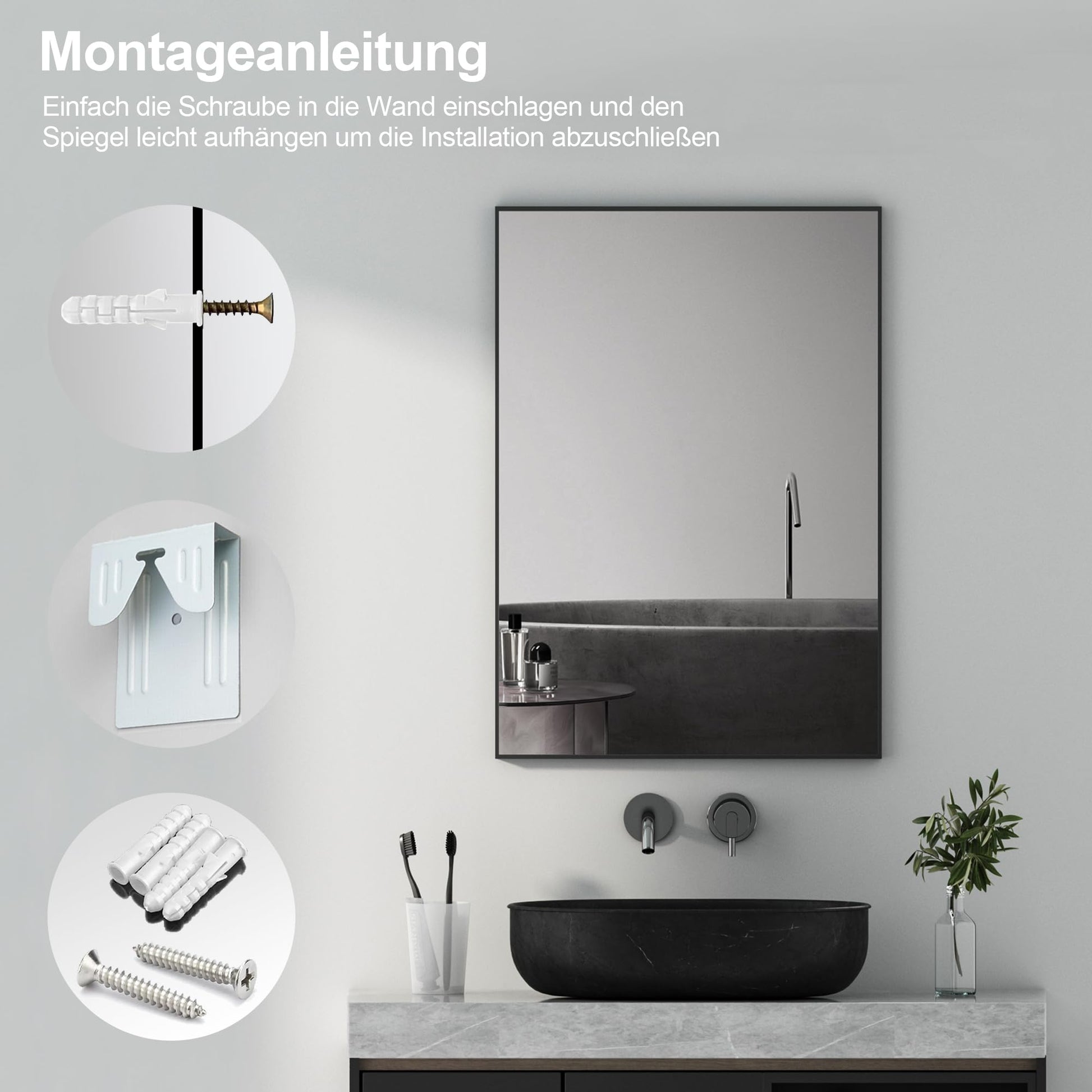["Black Mirror Size: 19.7 x 27.6 inches, Mirror distance from wall: 0.8 inches.", "2 wall mounting options, you can hang the mirror horizontally or vertically according to your bathroom space and habits.", "High-quality matte black aluminum frame. The frame is molded from a single piece, without unsightly seams. Bathroom mirror with black frame adds a touch of class, ideal for makeup, shaving, haircuts, etc.", "5mm HD copper-free and lead-free environmentally friendly mirror. Has higher reflectivity and more corrosion-resistant coating.", "Each mirror is packed in a high-quality, reinforced cardboard box to reach you smoothly and without damage. If you have any questions, feel free to contact us."]