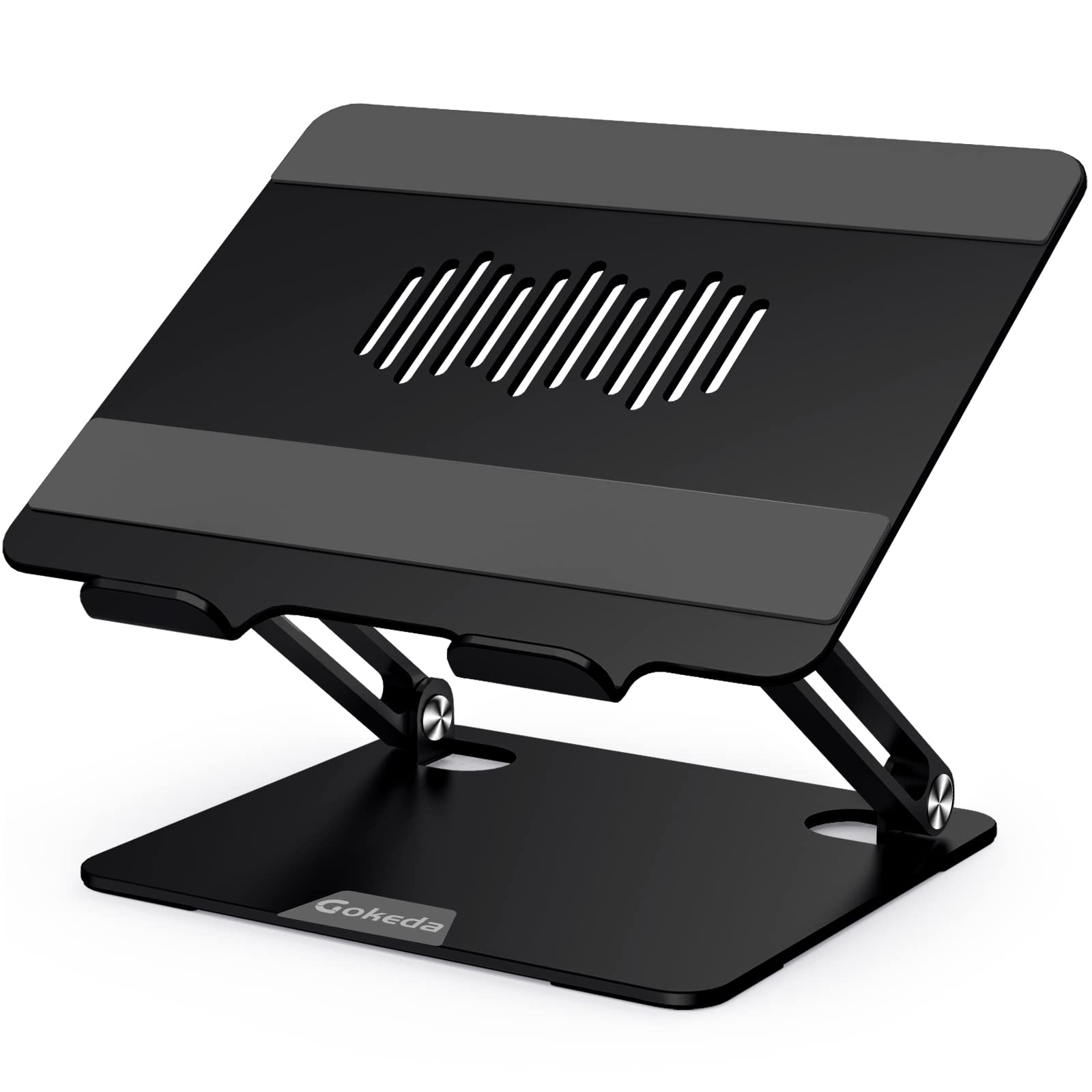 Gokeda Laptop Stand, aluminum ergonomic stand for desk, notebook stand with ventilation opening, compatible with MacBook Air/Pro, Dell, HP, Lenovo, and other 10-15.6" laptops.