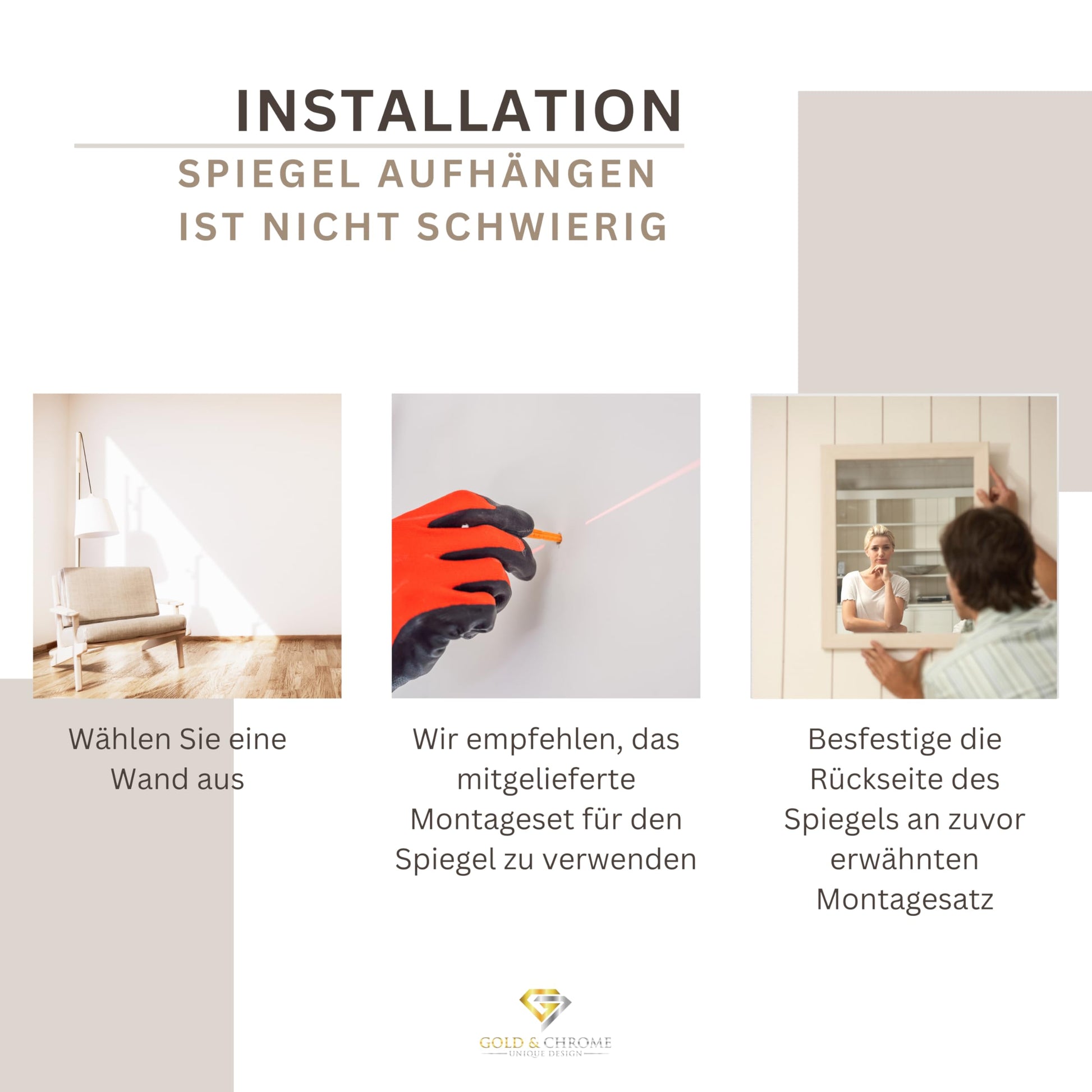 Easy installation: This bathroom mirror can be effortlessly mounted on any wall. The full-length wall mirror is ideal for those looking for a stylish and simple solution for their mirror wall. The large gold mirror offers quick and secure installation.