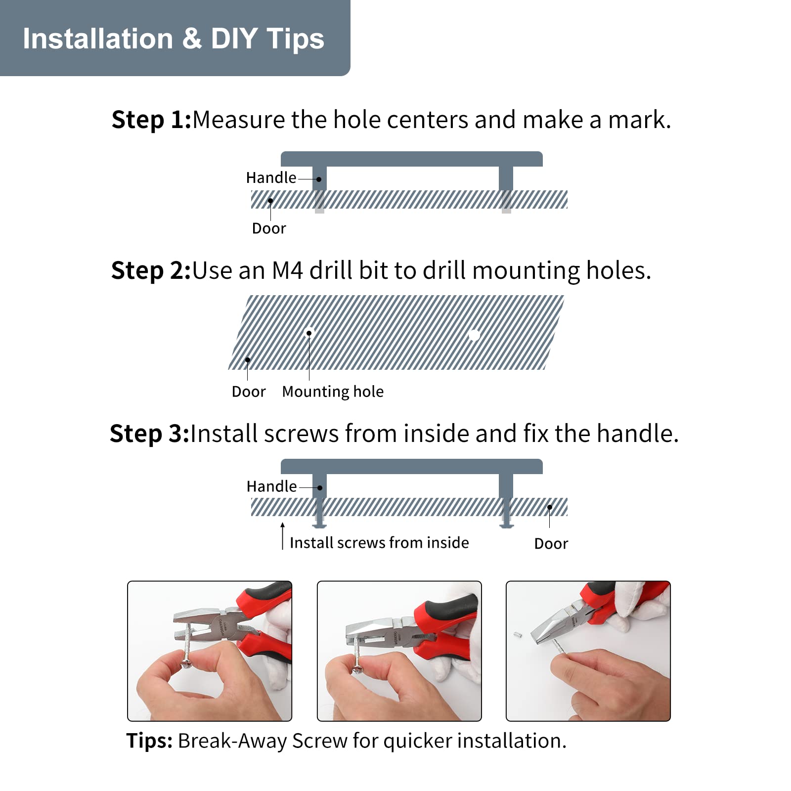 WHAT YOU GET - You will receive a pack of 5 brushed brass handles. Each handle includes M4 standard screws (1 inch and 1.57 inches). You can choose the right size according to the thickness of the cabinet. If you need a different screw size, please contact us.