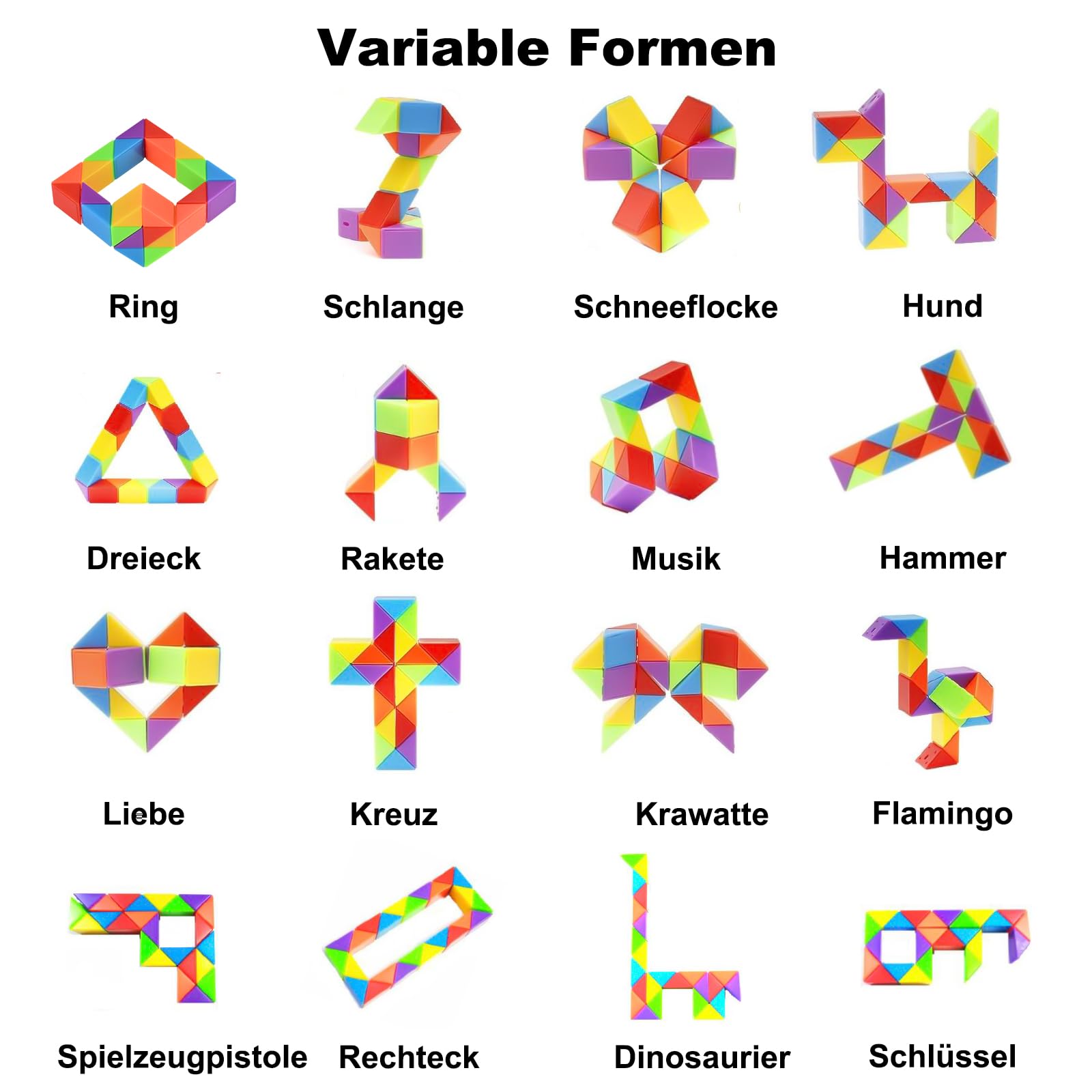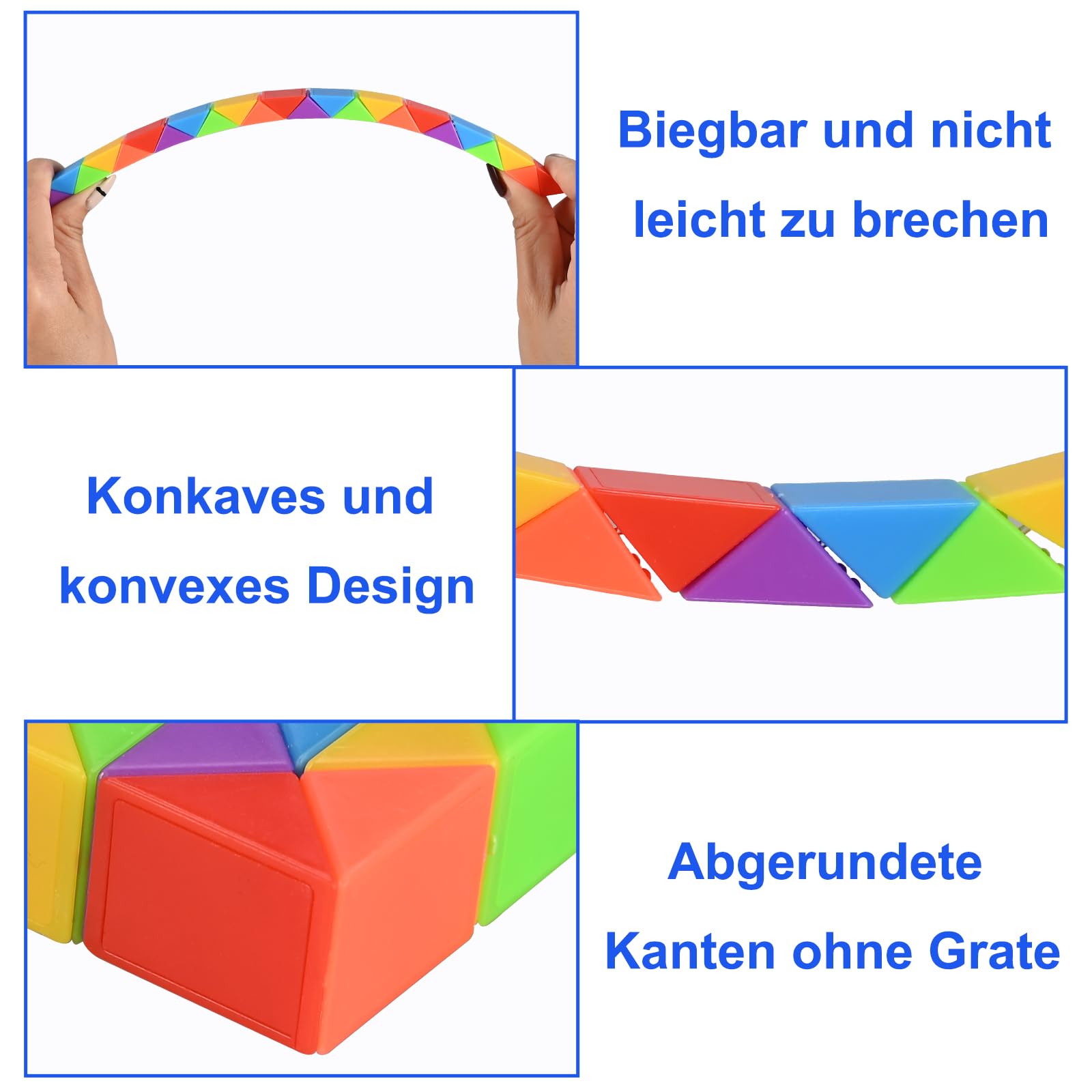 ["【High Quality】Magic Snake is made of ABS plastic, non-toxic and eco-friendly, durable. The connecting process between each small block is intact and not easily breakable. For children, the edges of the magic snake are round and smooth without burrs, it will not scratch the children, so you can rest assured that your children can play with it.","【Perfect Gift】This magic snake is the ideal children's birthday party favors and party favors. With its bright rainbow colors, the magic snake will quickly catch the eyes of children when placed in a party favor stack of gifts as a birthday party favor, treasure chest prize, pinata filler, and advent calendar filler. Children will love these small gifts!","【Many Possibilities】You will receive 24pcs snake toys, each magic snake party favor for children's birthday contains 24 small blocks, giving you multiple possibilities. From the initial straight line to over 100 shapes: puppies, elephants, snakes, flamingos, boats, stairs, and more. You can twist and turn as much as you want to create your favorite shapes according to your imagination and enjoy the collision of your fingers and brain.","【Multi-functional】This birthday party favor for children is a multifunctional and amazing three-dimensional cube puzzle toy. It can enrich children's imagination and train their concentration. For children who love electronic devices and have ADHD, this magic snake party favor for children can create a different gaming experience for them.","【Easy to Carry】For children, this snake party favor for children's birthday is light enough and easy to carry or store on the go. They can take it to play in the garden, at school, on the lawn, and anywhere else, and they are also able to put it in their bag as giveaways for a friend's birthday party. We have also prepared a game guide to help you play Magic Snake faster."]