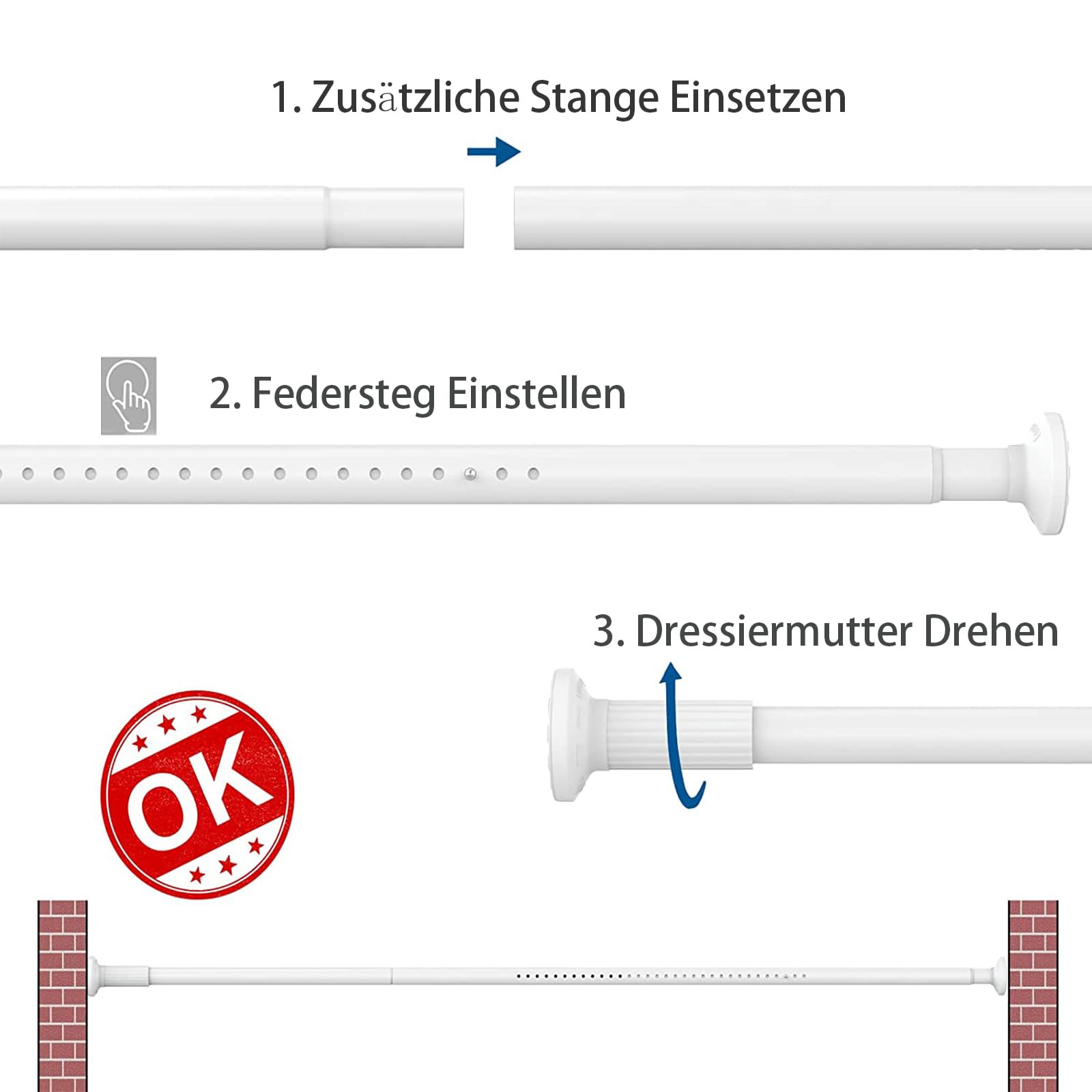 【HEAVY DUTY】: The Multifunctional Telescopic pole is made of 304 stainless steel with a large spring inside, making it rust-resistant. The telescopic pole with a diameter of 1.26 inches has greater robustness and a carrying capacity of 44 lbs. Our heavy-duty telescopic pole can hold heavy blackout curtains and can also be used as a laundry rack.