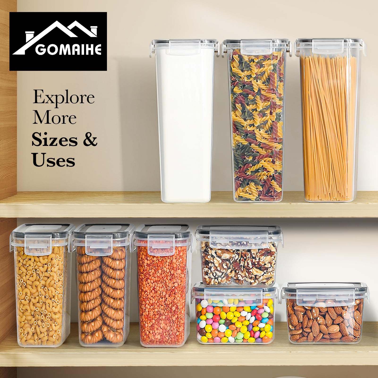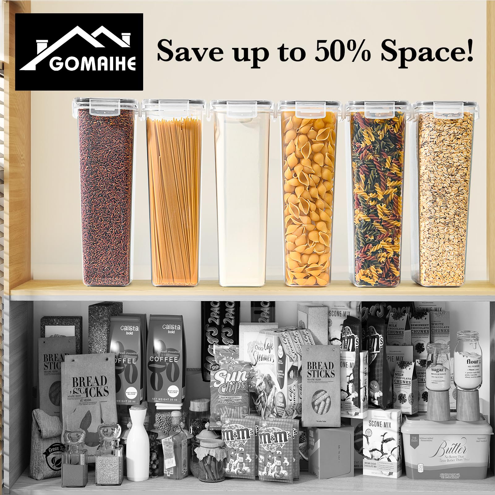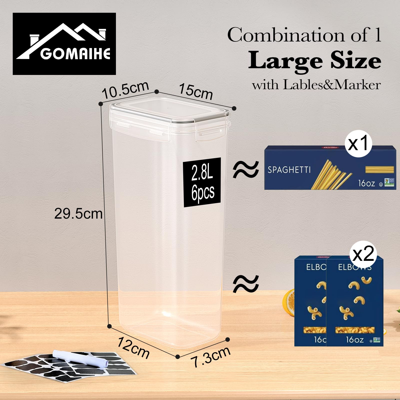 GoMaihe 6-piece set 2.8L storage containers: Containers with lids for spaghetti storage | Airtight kitchen storage box for cereal, flour, pasta, and sugar | BPA-free | Dishwasher safe