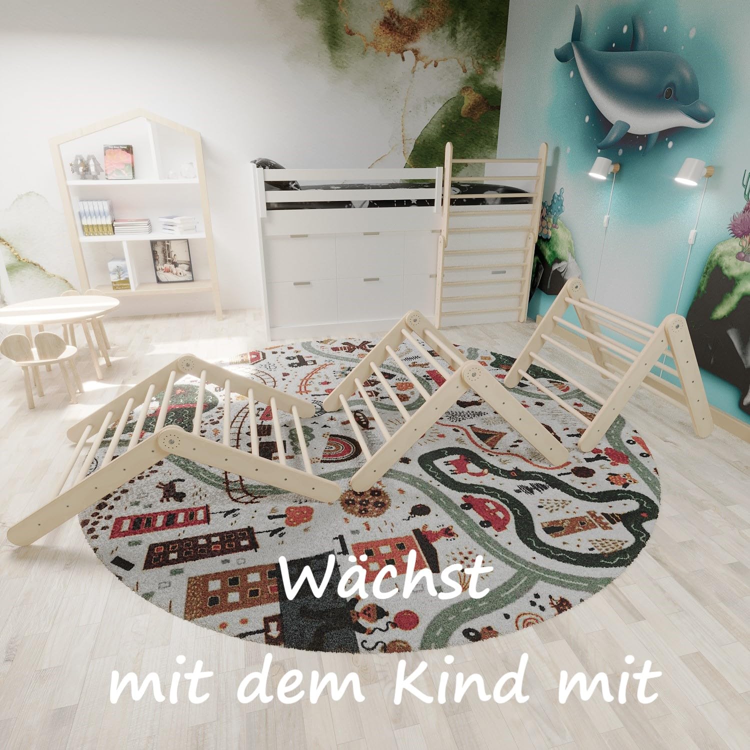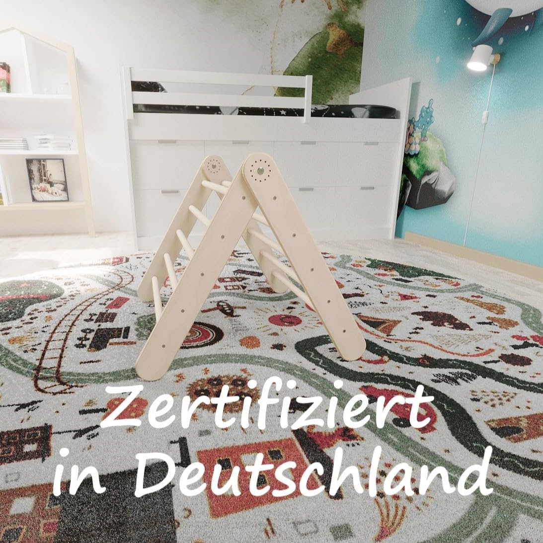 "Made in Germany! We produce exclusively in Baden-Württemberg. Our climbing toys, from packaging to screw, are developed and manufactured in Germany. Premium Quality! 100% ECO and sustainable from non-toxic materials. We only use FSC-certified wood for our products. Climbing triangle made of birch wood, natural finish. Sturdy and Safe! Quality and safety are our top priorities. High-quality climbing frame in the style of Pikler, tested by an independent institute in Germany according to EN 71. Active play equipment! Perfect Pikler triangle for children's motor development. Promotes movement, balances, and coordination. Great as a gift for toddlers and babies from 10 months onwards. Flexible and Space-saving! Montessori climbing toy for girls and boys. Adjustable Pikler triangle, can be adapted to body size. Climbing triangle with slide-ramp, expandable for climbing or sliding. Foldable for space-saving. You are buying directly from the manufacturer. Spare parts delivery guaranteed."