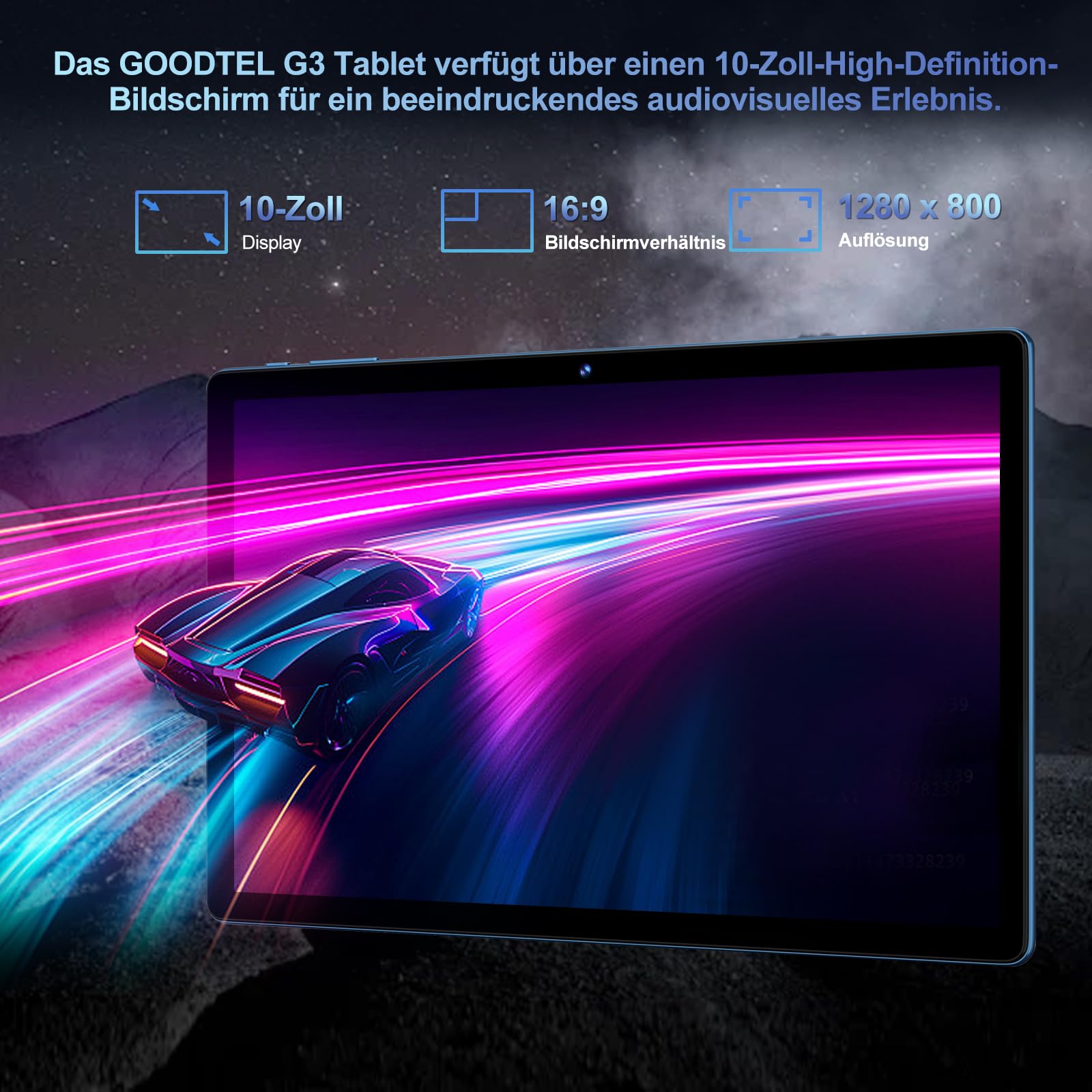 ["【Newest Android 13 System】The tablet is equipped with the latest Android 13 system, which is fast and offers high compatibility. The system fully protects the privacy of users. You can customize desktop themes, text styles, and app icons, and add widgets like clock, weather, and calendar. Android 13 brings you new features like multi-user, multi-window, split screen, and parental controls","【Powerful Tablet 12 GB RAM + 128 GB ROM + 2 GHz Processors】The G3 tablet comes with 12 GB RAM (6 GB RAM + 6 GB ROM expansion) and 128 GB ROM with support for SD card expansion up to 1 TB. The ultra-wide RAM provides plenty of space for running apps, downloading and storing photos, movies, and games. Paired with a 2.0 GHz high-speed processor, the tablet can smoothly handle tasks such as gaming, office, and audio","【Dual WiFi and Bluetooth 5.0】The G3 tablet supports 2.4 GHz and 5 GHz WiFi, the new WiFi reception and transmission channel improves the speed and stability of the network connection. The Play Store is pre-installed and various apps can be downloaded from the Play Store. G3 features built-in Bluetooth 5.0, which is more stable and faster, allowing you to connect Bluetooth devices such as Bluetooth headphones, Bluetooth keyboard, etc.","【10-inch Screen and 6000 mAh Battery】The G3 features a smart 10-inch IPS display that effectively enhances screen sensitivity and touch comfort. Provides clear and vibrant colors in various environments and filters blue light. The tablet has 5MP + 8MP front and rear cameras for video calls with family, friends, and colleagues. The large 6000 mAh battery provides enough power to operate the tablet","【Tablet and Laptop in 1 + Seller Service】The G3 tablet package includes a mouse, Bluetooth keyboard, OTG adapter, protective case, charger, screen protector, and other accessories, no need to buy more. You can configure the tablet like a small laptop. We have a professional technical team and customer service, please contact us if you need our help"]
