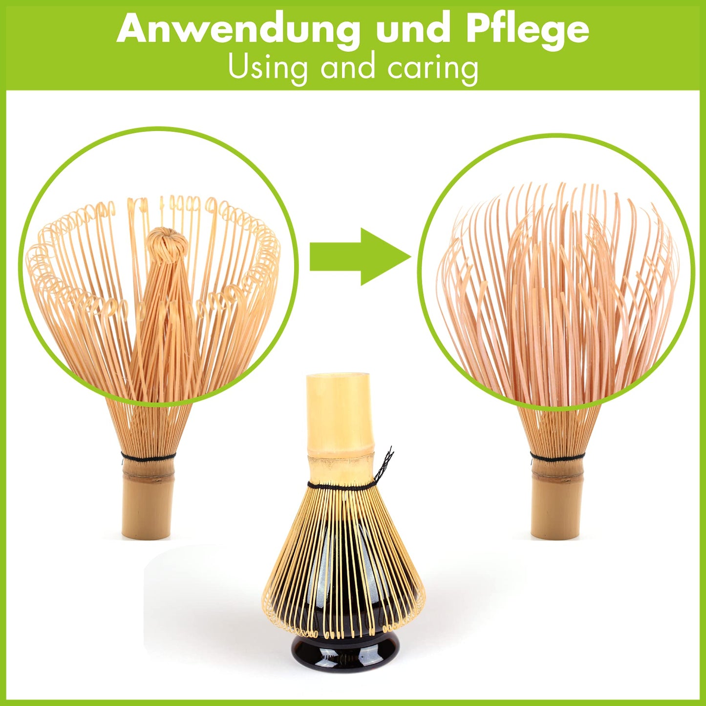 ["π΅ PREMIUM QUALITY - Our tea ceremony set is perfect for starting the traditional Japanese Matcha tea ceremony, known as the \"Way of Tea\". It's also a great gift for tea lovers who want to experience the authentic taste of Matcha from the start.","π΅ 100% GENUINE - Genuine Japanese Matcha from Mie Prefecture, organically grown (DE-ΓKO-012). It boasts a fresh, green color and a mild, full-bodied flavor. Try our Matcha now!","π Large, heavy ceremonial bowl (430 ml) with plenty of room for easy Matcha whisking. Chawan in traditional Hantsutsu-gata design with curved rim and vertical wall.","β Matching design of Matcha bowl and whisk holder for a harmonious appearance - Available in many attractive styles","π GIFT IDEA: This Matcha set comes in a decorative box with traditional Asian motifs and includes all necessary accessories for a relaxing Matcha tea ceremony. A lovely gift for tea lovers.","π 100% NATURAL: Matcha whisk and spoon made of high-quality natural bamboo without varnishes or other chemicals. Matcha bowl, whisk holder, and tray are food-safe, lead-free, and cadmium-free tested."]