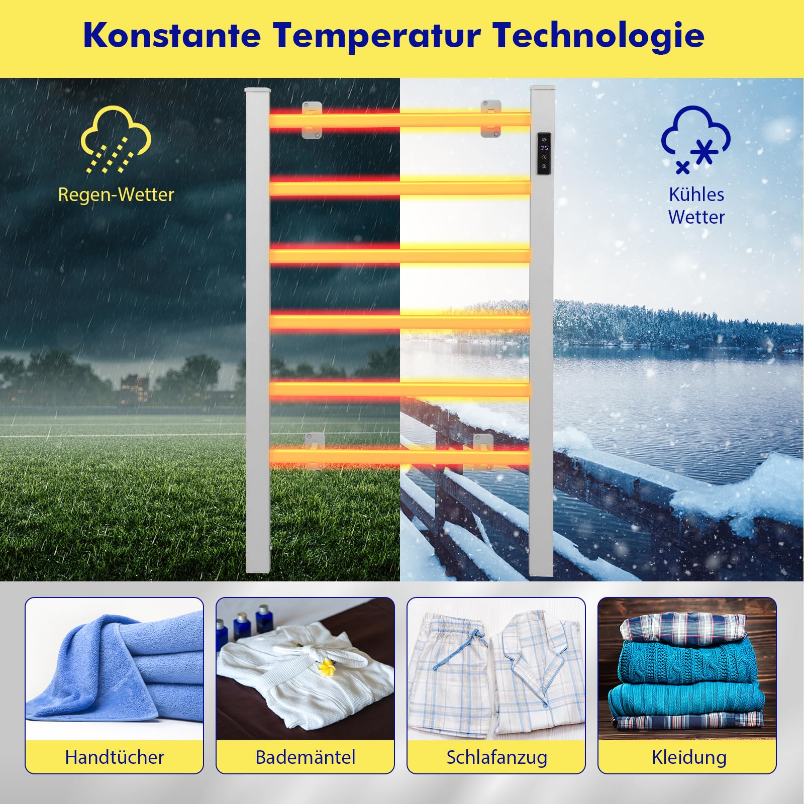 Practical experience: Use this towel warmer to keep your towels dry and comfortable in wet and cold weather. With its compact design, it helps you save a lot of space and is ideal for bathrooms, bedrooms, and other limited spaces.