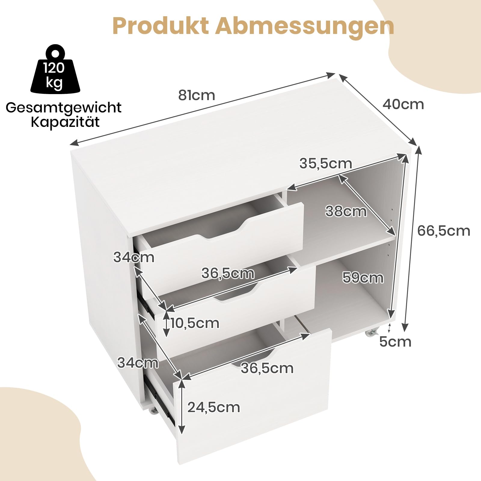 GOPLUS Roll container, mobile filing cabinet with 5 wheels, 3 drawers and 2 open compartments, office cabinet printer stand for documents in A4, letter & legal format (white)