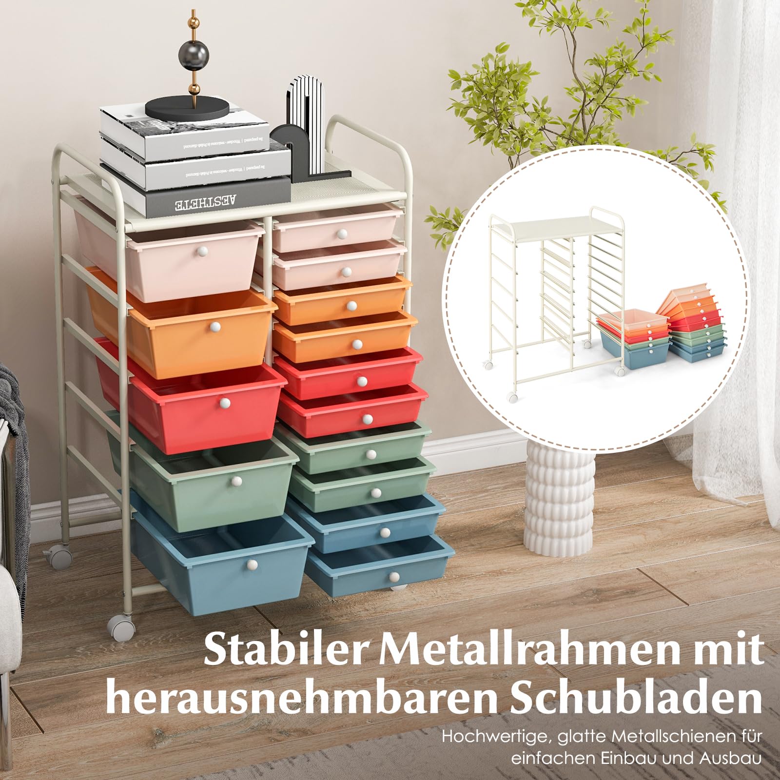 GOPLUS rolling cart with 15 stackable drawers, choose your color. Perfect for organizing your home, bathroom, or office.