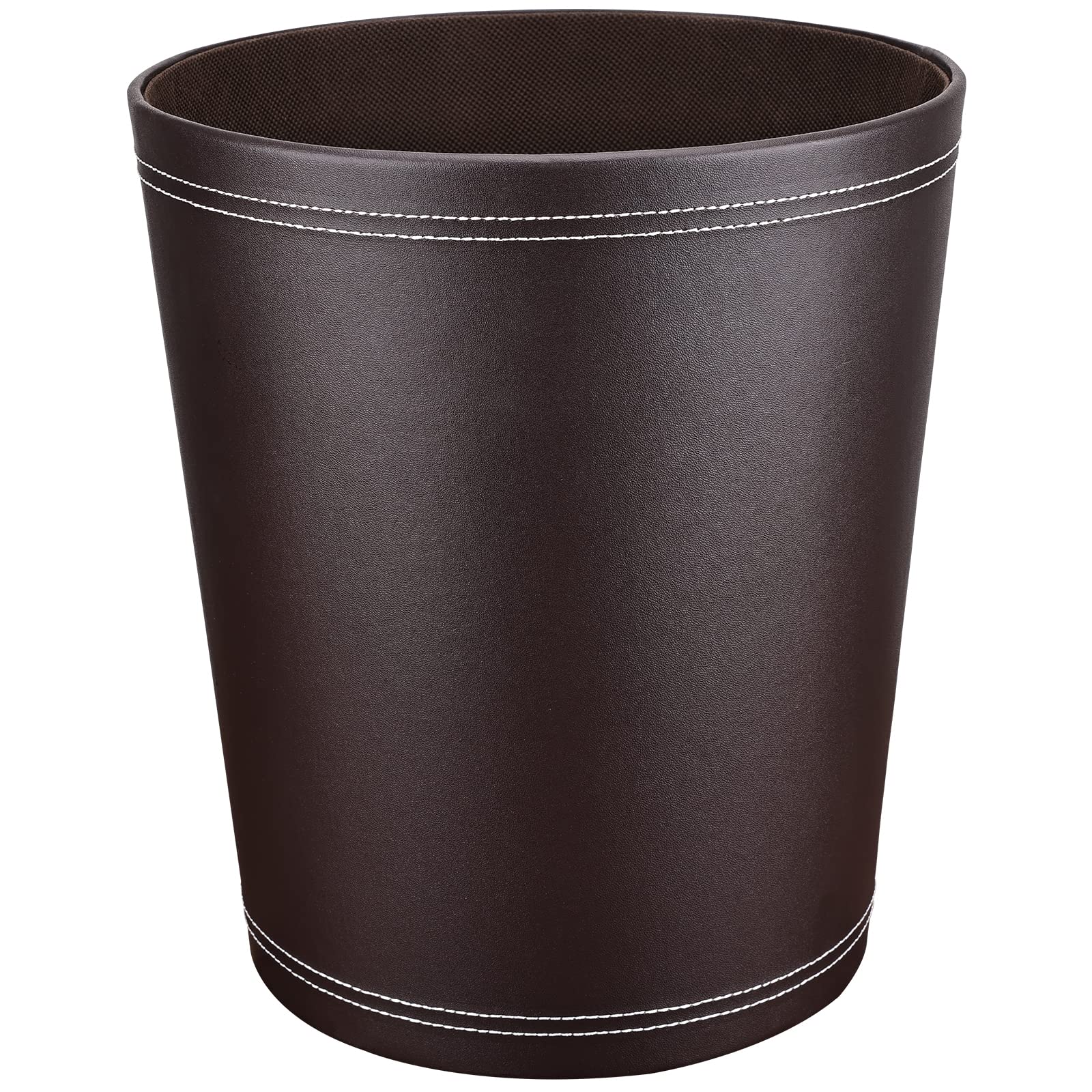 ["LEATHER WASTE BASKET Covered with high-quality PU leather, inside are fleece fabrics, durable and sturdy construction, good looking.","SLIM MODERN DESIGN Round design of the trash can offers a sleek industrial look and easy everyday convenience.","MULTIFUNCTIONAL STORAGE BASKET Office paper basket to store in the office; pull through clothes at home quickly; or used in first-class hotels. Meet your different needs.","STANDARD CAPACITY The opening diameter of the leather waste basket is 9.4 inches, the bottom diameter is 7.7 inches, and the height is 11 inches.","USE IN ANY ROOM Compact and versatile, use leather waste basket in any room of the house! such as your living room, bedroom, bathroom, kitchen, office, hotel, etc., and it is also easy to clean."]