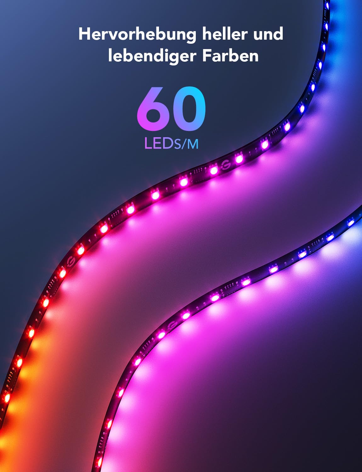 "Better RGBIC color effect: High-density light beads provide a more uniform distribution of lights to create exquisite light effects. Share and filter the RGB values to highlight game elements such as explosions and lightning.",