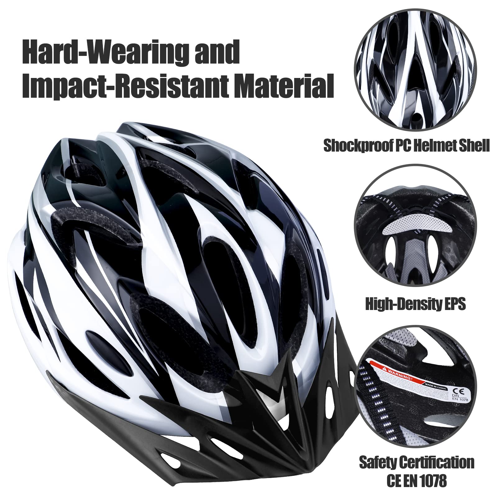 "【Safe and lightweight】 The outer shell of the bicycle helmet is made of PC and the main body is made of EPS material, which is very light, easy to carry, durable, and can absorb shocks to protect your head and provide more safety.