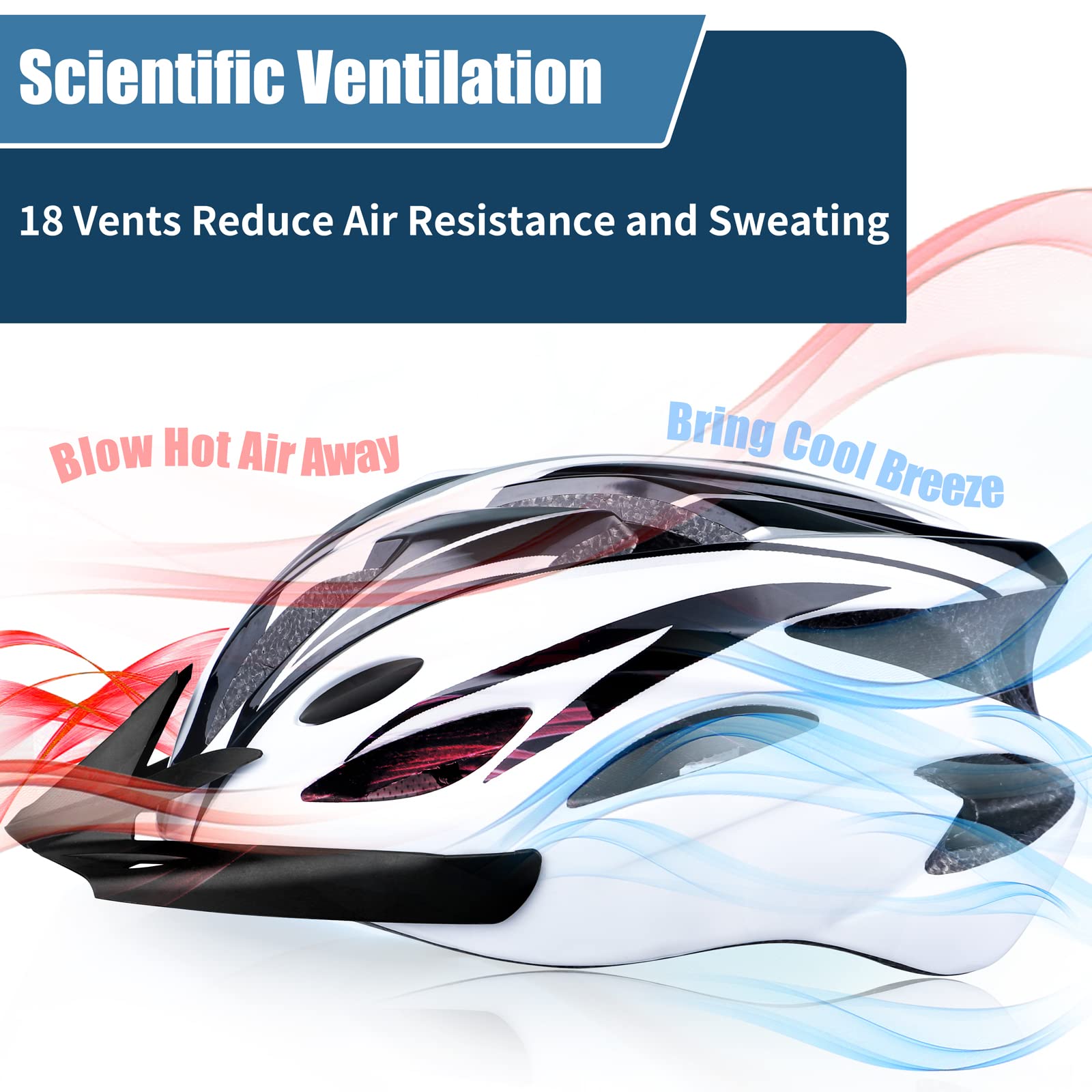 【Strong breathability】 The bike helmet has 18 ventilation openings for perfect ventilation, effectively reducing air resistance and sweating, keeping your head cool even during exercise.