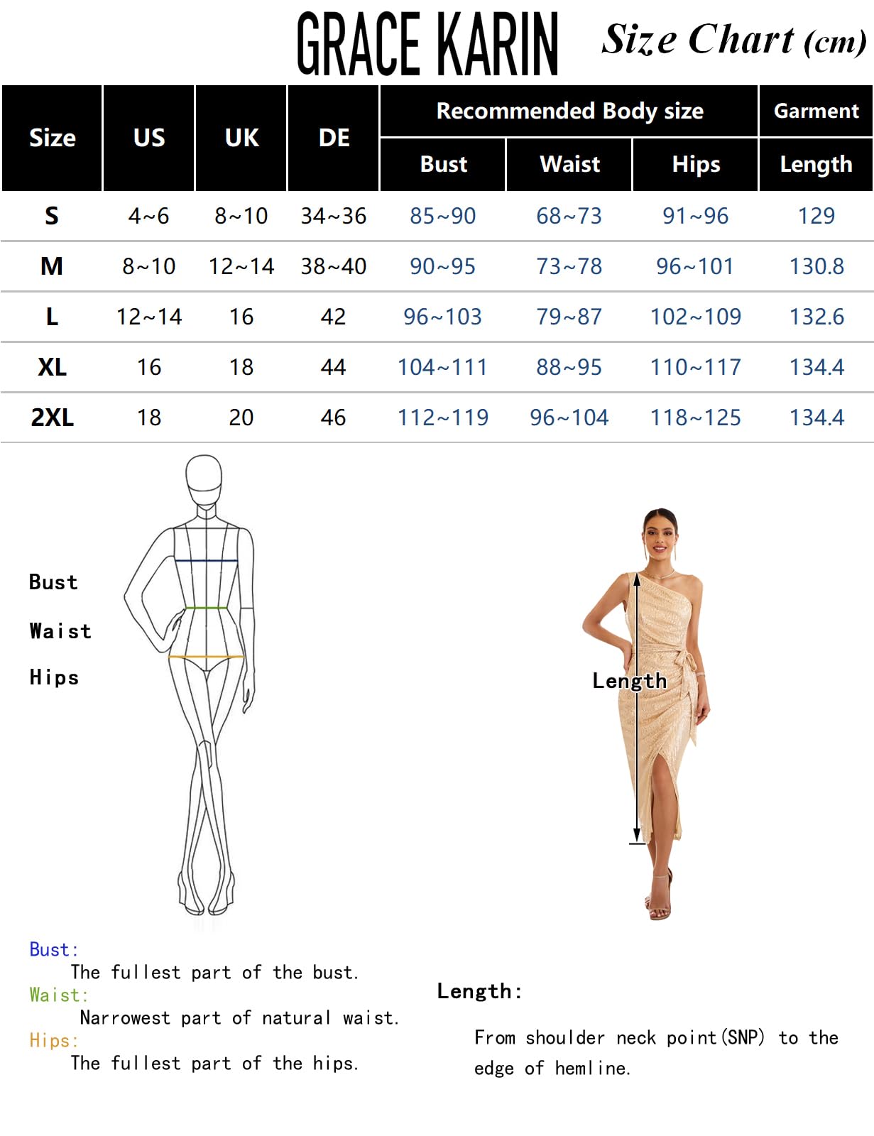 ["đăFeatureăWomen's Sequin Dress for Cocktail Parties, Elegant One Shoulder Ruffle Midi Wrap Dress for Club Nights","đăDesign DetailsăSparkling sequins and fully lined, Dress with split chain front, Bodycon dress with one shoulder and diagonal neckline, Removable matching belt, Overlapping hem","đăOccasionsăThe dress is perfect for cocktail parties, wedding guests, going out, banquets, evening and prom dresses to add a touch of elegance and charm.","đăSizeăPlease refer to the size chart offered by us instead of the Amazon size chart and check the size carefully before purchasing!","đăClothing CareăHand wash, maximum washing temperature 40â. Iron at a maximum sole plate temperature of 110°C and steam ironing may cause irreversible damage."]