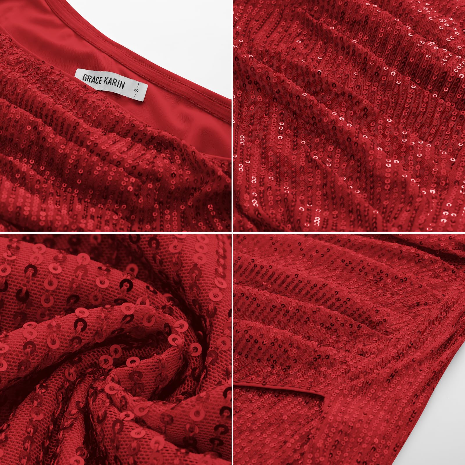 GRACE KARIN Women's Sequin One Shoulder Party Dress Asymmetric Neckline Maxi Wrap Dress for Wedding Guests Red S
