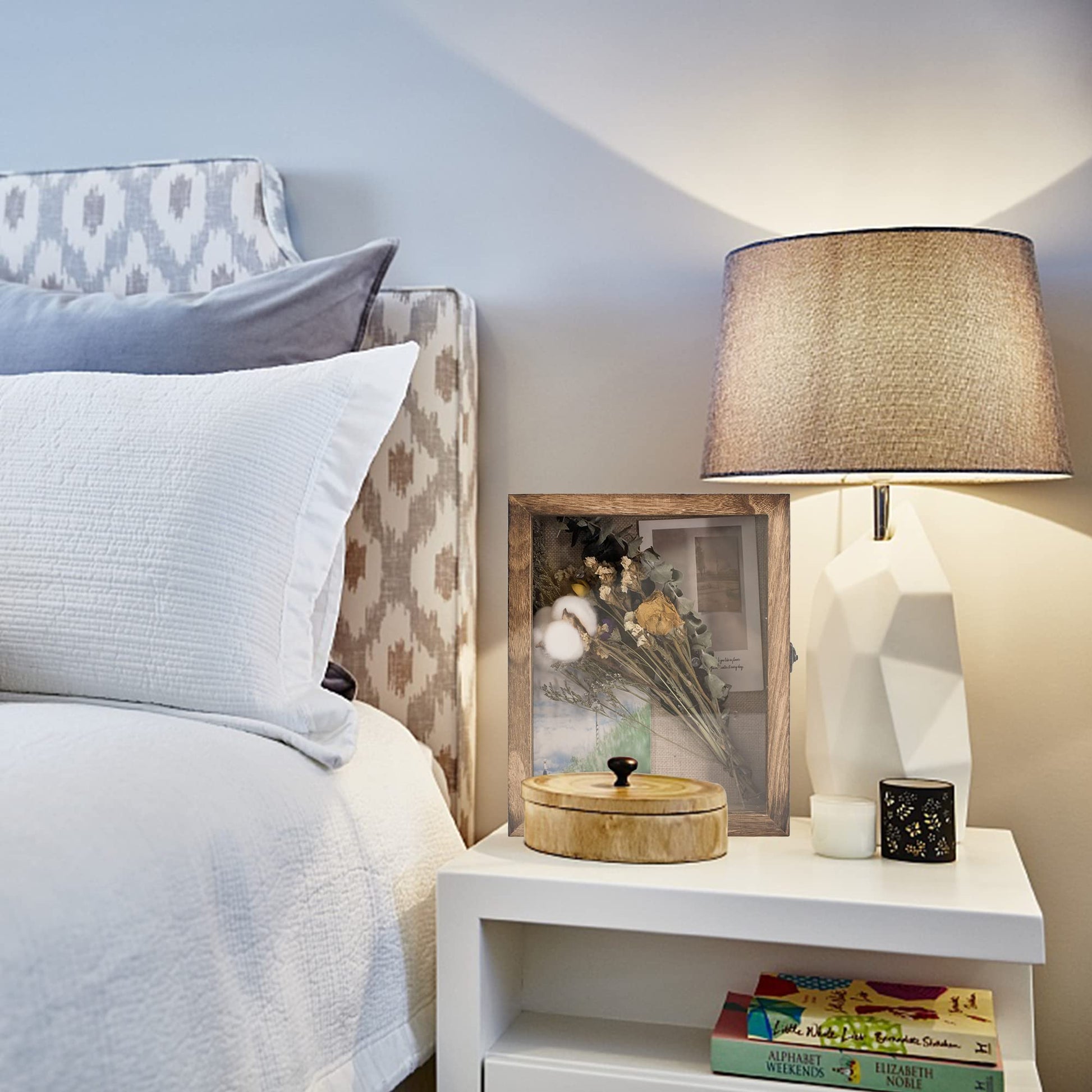 ["High quality materials: Shadowbox comes with a solid, durable wooden frame, woven fabric interior with 6 push pins, hasp horn lock door with a transparent real glass window, and two metal sawtooth hooks on the back","Hinged door: The front display door makes it easy to place or exchange items inside. The retro horn lock makes the shadowbox lockable and more secure, preventing items inside from falling out","Decorative frame: The vintage look solid wood complements any decor and stable structure with 2 hooks, suitable for versatile use, horizontal and vertical","Memory box: Protect and share your most valuable moments and memorabilia. You can arrange wedding bouquets, photos, cards, military memorabilia, pet keepsakes, concert tickets, medals, etc. Perfect gifts","Customer service: We offer excellent customer service. If you have any questions about this product, please contact us in a timely manner. Our professional team will answer your questions and concerns and provide solutions"]
