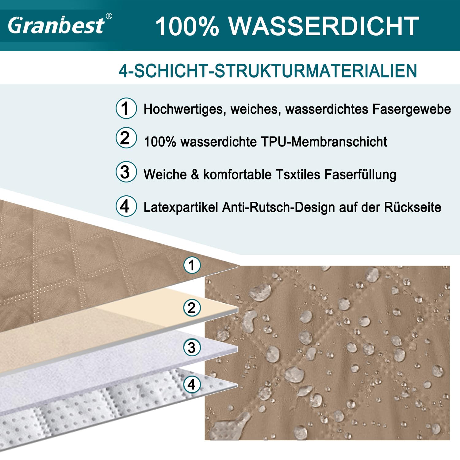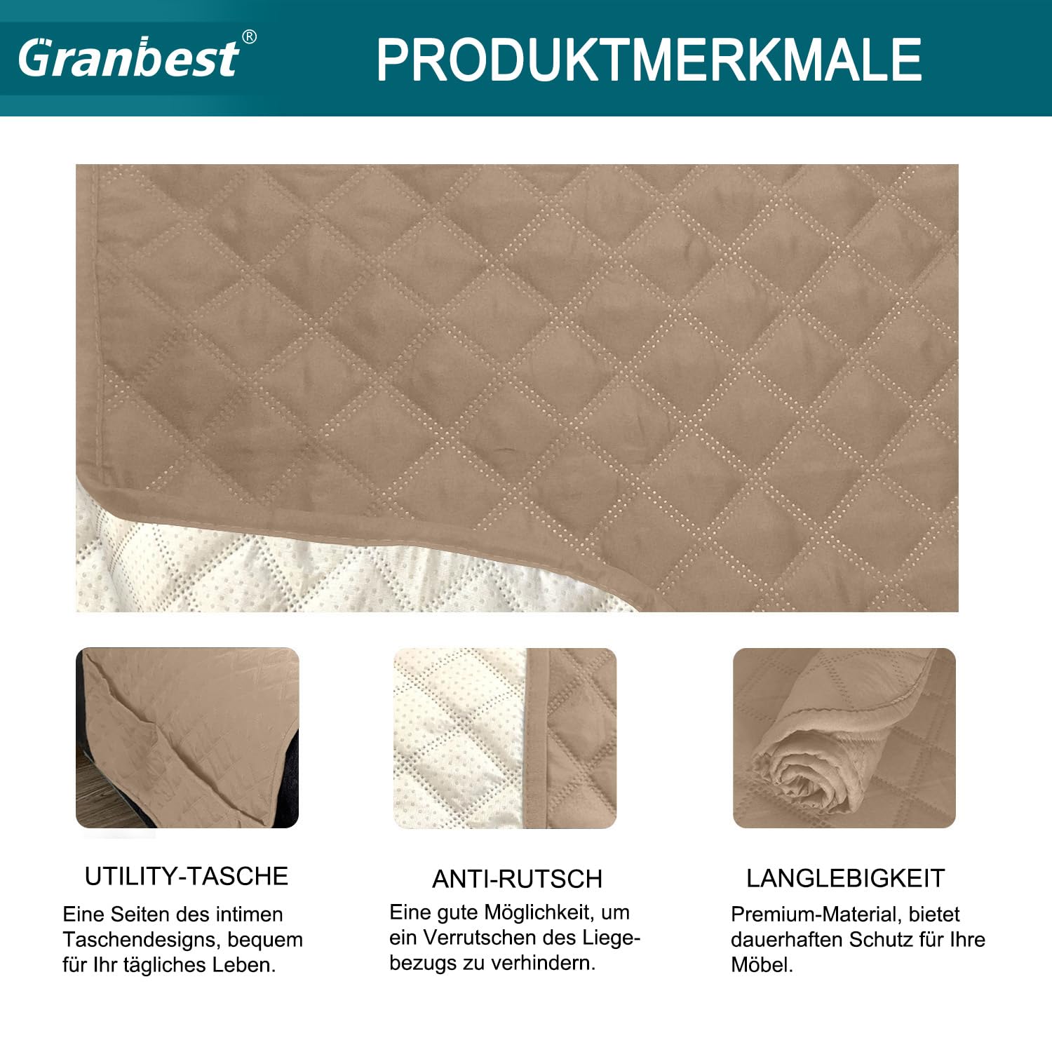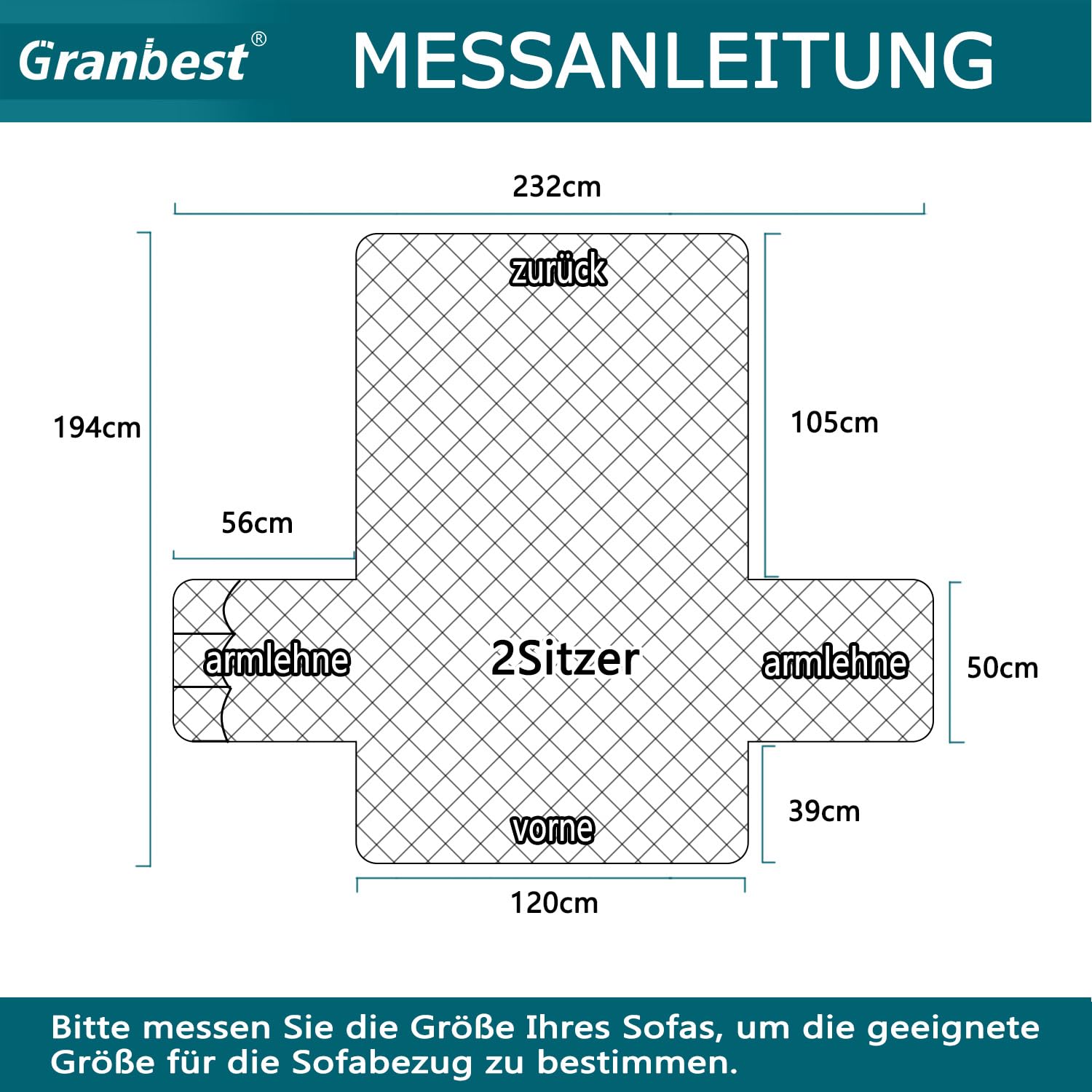 "100% WATERPROOF MATERIAL: Granbest waterproof sofa cover is made of waterproof technology fabric that can effectively prevent accidental spills and keep your furniture clean and tidy. The multi-layer water-resistant fabric makes sofa covers even more waterproof than ordinary ones. This couch cover is chemical-free and skin-friendly, high safety for children and pets. When liquid gets on the surface of the sofa cover, wipe it off gently.","NON-SLIP DESIGN & ELASTIC BAND: Suitable for both leather and fabric sofas, as it has rubber dots on the back of the fabric to prevent slipping. With the silicone rubber back design, this sofa cover can stay in place securely. Super stretch elastic band is designed for the back of the sofa and makes it easier to adjust your sofa to most furniture pieces.","PERFECT PROTECTION: This sofa cover can fully cover the sofa. Protect your sofas and chairs from dust, stains, tears, spilled drinks, muddy paws, scratches, and pet hair. The sturdy and durable furniture protection not only helps you save a significant investment in furniture but also enhances your room decor. Our delicate waterproof sofa cover with imitated memory fabric is made with ultrasound quilted grid technology.","MULTIPLE CHOICES: There are a variety of sizes and colors available. 1-seater: 22 x 76 inches, 2-seater: 47 x 76 inches, 3-seater: 68 x 76 inches, 4-seater: 80 x 87 inches. Chaise: 24 x 85 inches, Futon: 68 x 76 inches, Wing chair: 24 x 85 inches. We also have different colors prepared for you to choose from to match your various room decor. The padded sofa cover creates a comfortable environment for you and your furry pets to rest.","MACHINE WASHABLE: These sofa protectors are machine washable in cold water. We recommend washing with water preferably under 86° Fahrenheit. Please do not bleach, tumble dry, or iron at low temperature. We strive to provide the best service to our customers. If you have any dissatisfaction or suggestions, feel free to contact us."