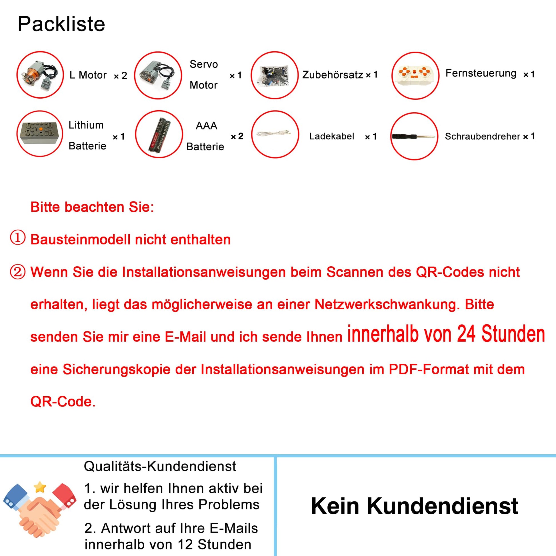 "For Fast & Furious Doms Dodge Charger 42111 Supermotor and remote control and lighting set. Electric motors bring the model to life. The lighting set gives the model its soul. Includes only motor and lighting upgrade kit, model not included. Provides an electronic version of the manual, step-by-step assembly, clear and easy to understand. [If you do not receive the installation instructions when scanning the QR code, it may be due to a network fluctuation. Please email me and I will send you a backup copy of the installation instructions in PDF format with the QR code within 24 hours.]"