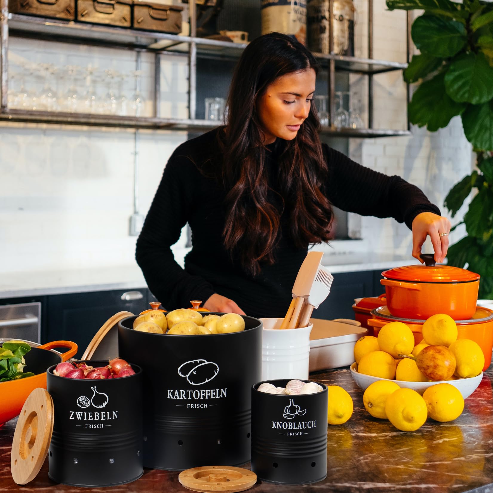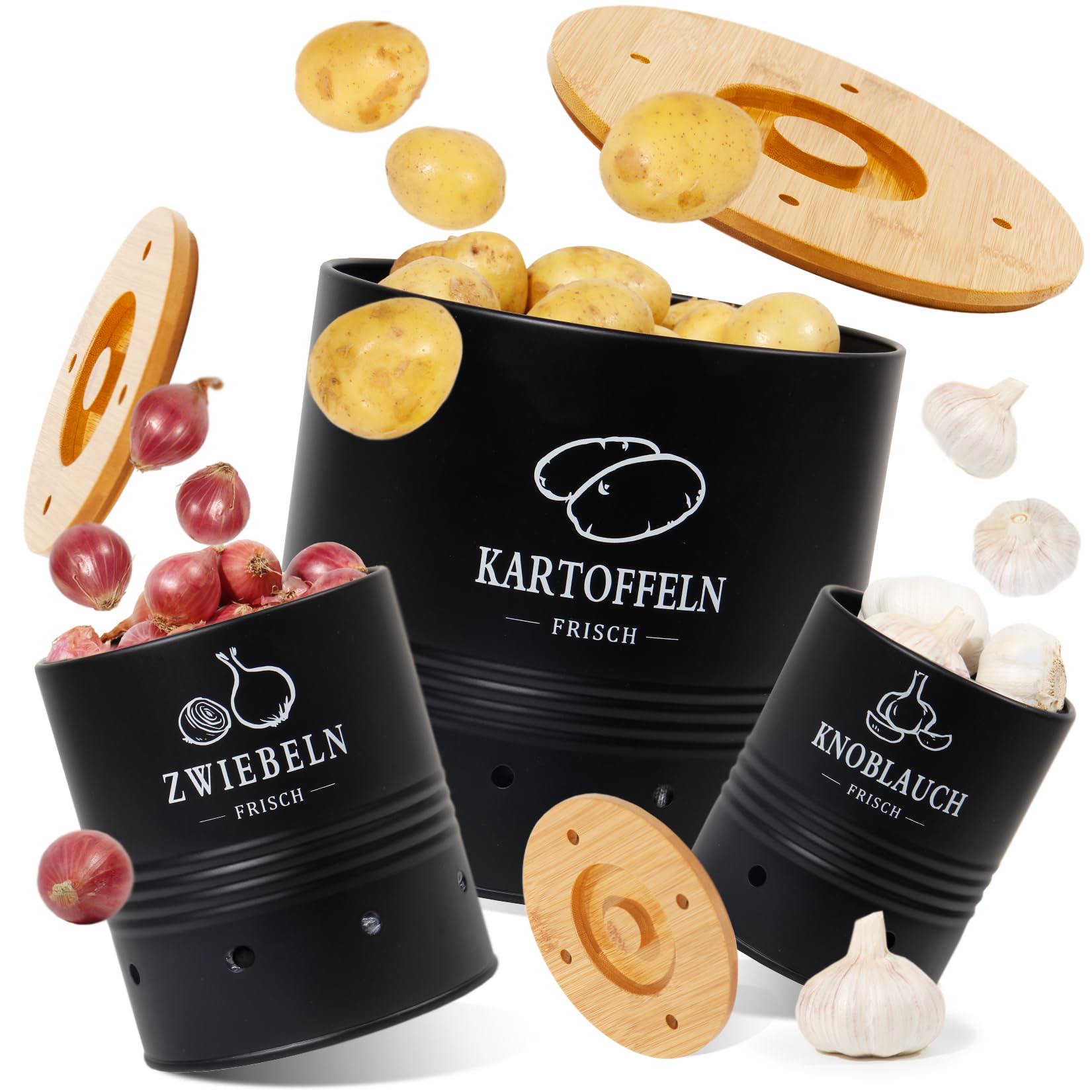 GREELUE Premium Potato Storage Box [3-Pack], Potato, Onion, and Garlic Storage, Keeps Vegetables Fresh Longer (SET02)