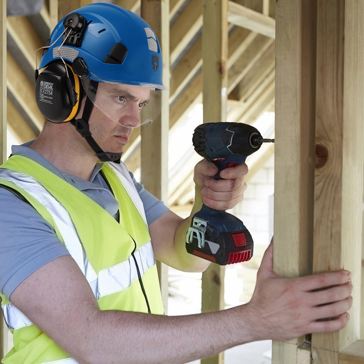 GREEN DEVIL 3-in-1 Forestry Helmet Safety Helmet Construction Helmetcomplying with EN397, High-strength ABS structure helmet, with visor and ear protection ear muffs, stable 6-point attachment