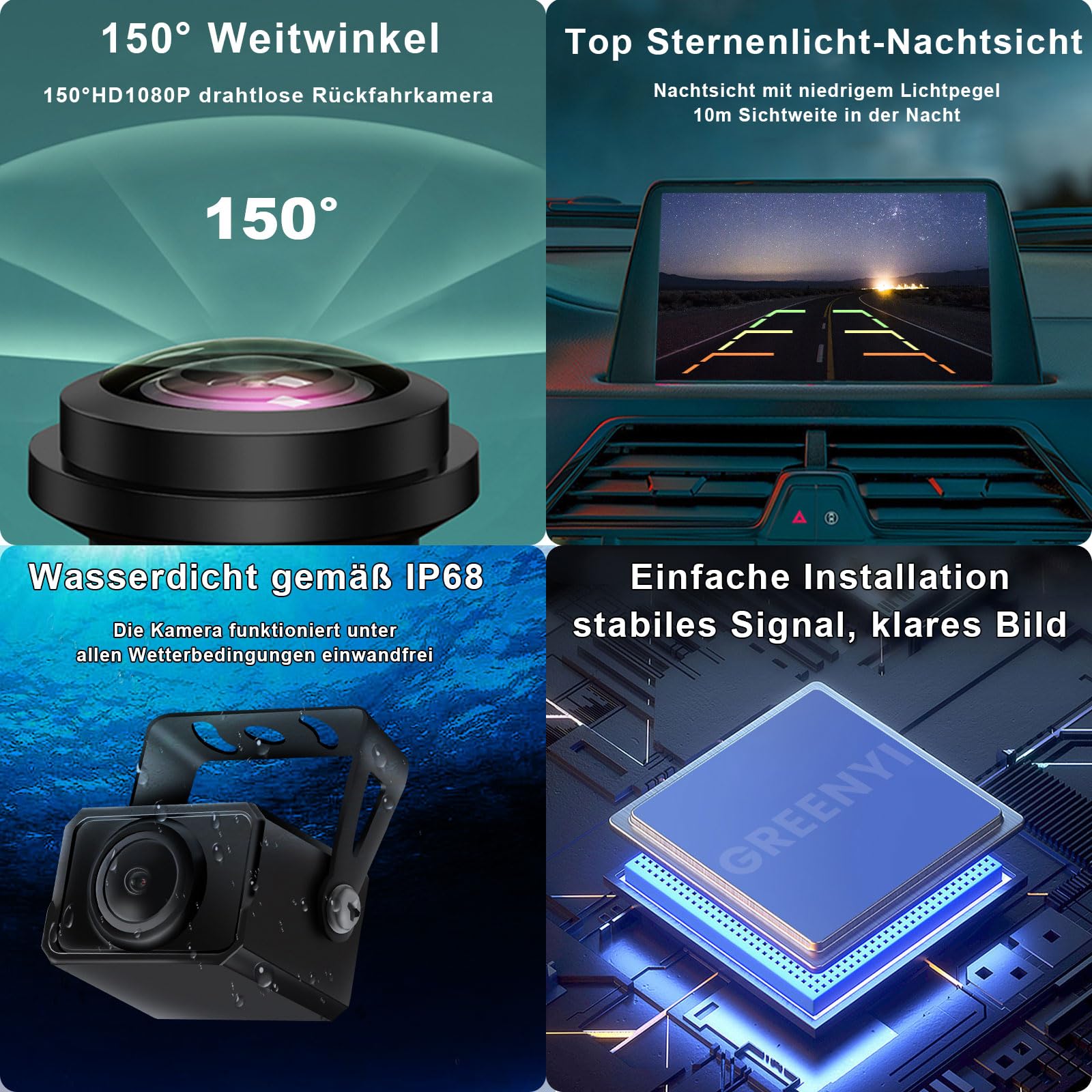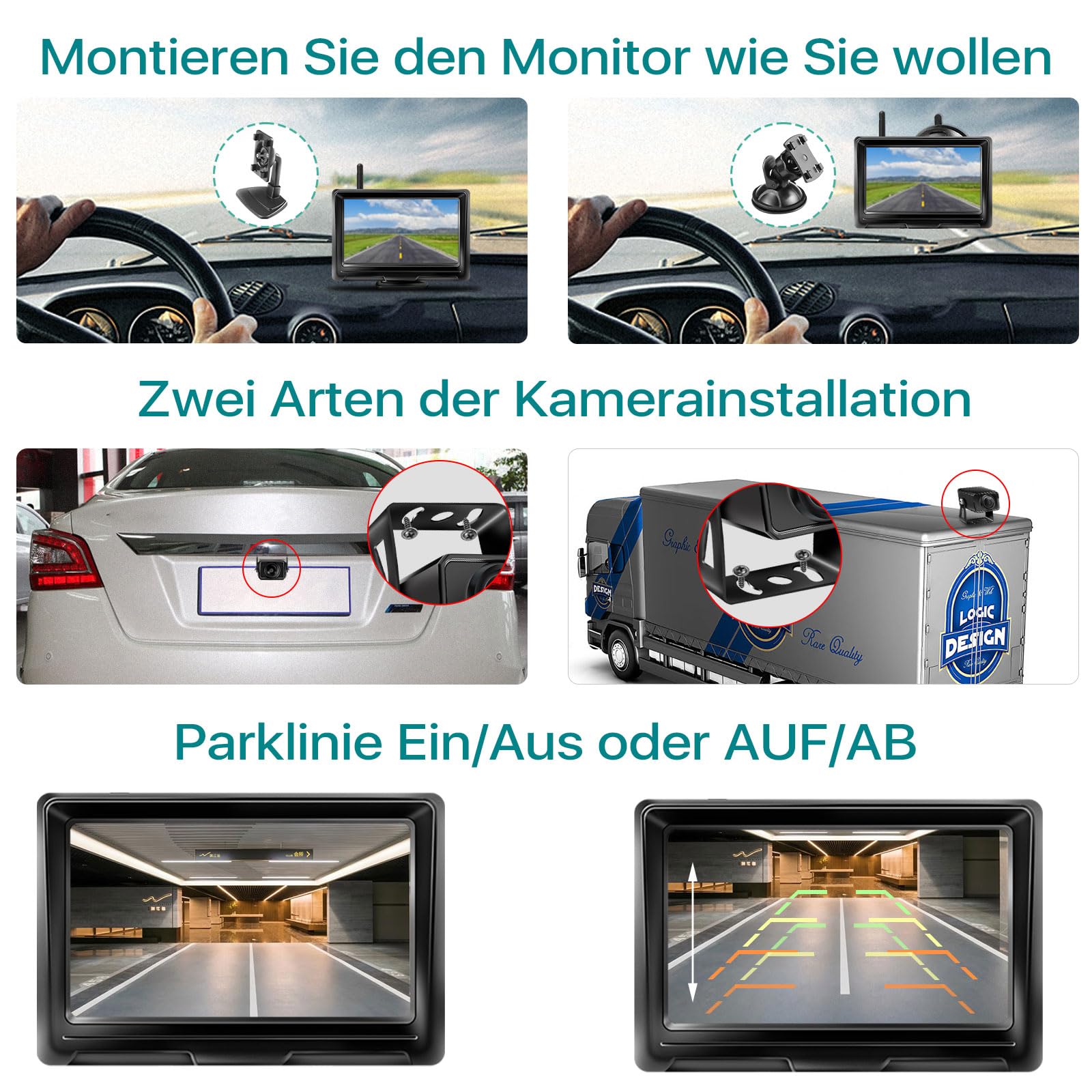 GREENAUTO Wireless Backup Camera, AHD 1080P wireless backup camera with IPS 5 inch Car Monitor Backup Camera System for car, truck, RV, trailer, camper, van