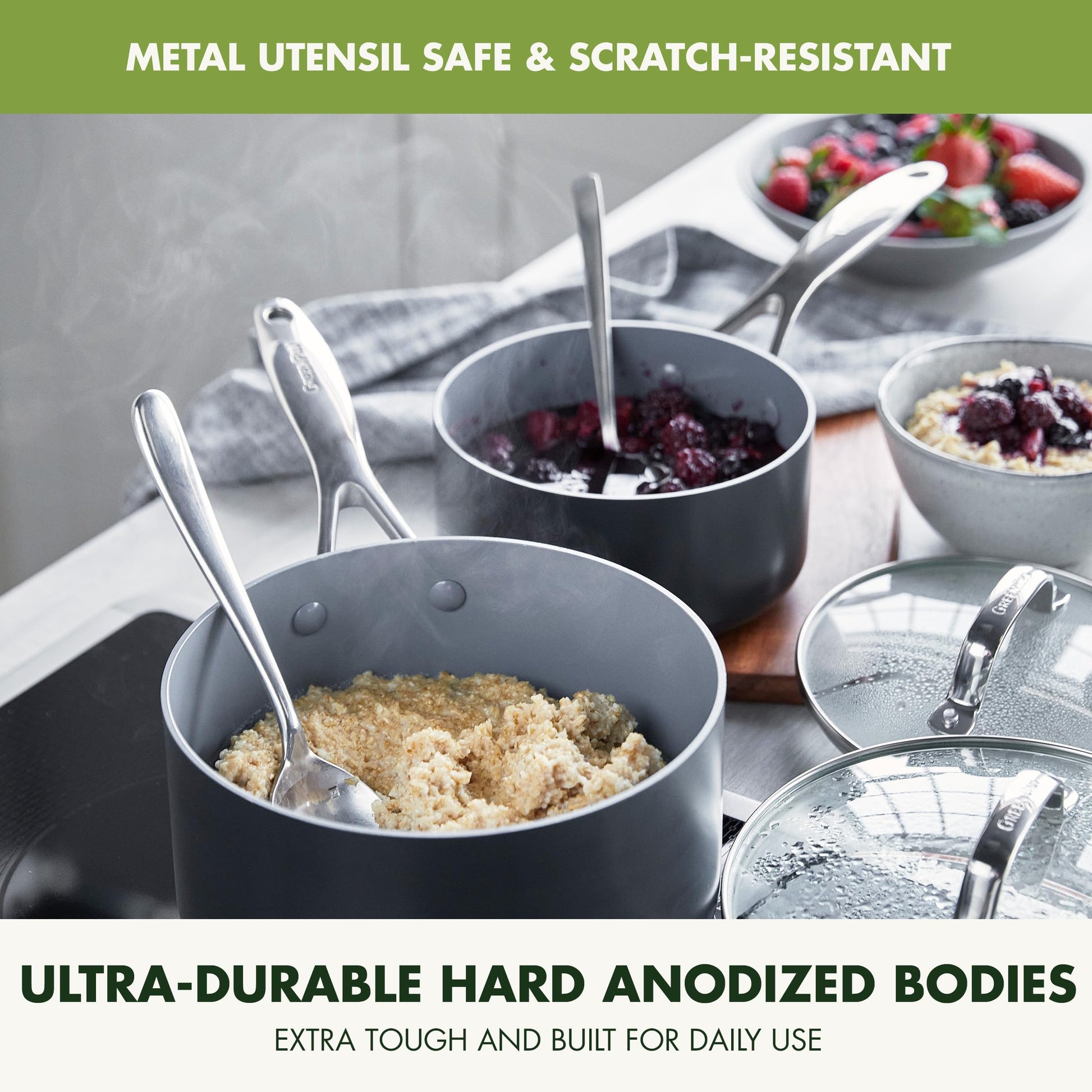 GreenPan Valencia Pro Hard-Anodized Healthy Ceramic Nonstick 11-Piece Cookware Set, Pots and Pans, PFAS-Free, Includes Skillets, Saute Pans, Induction, Dishwasher Safe, Oven Safe, Gray